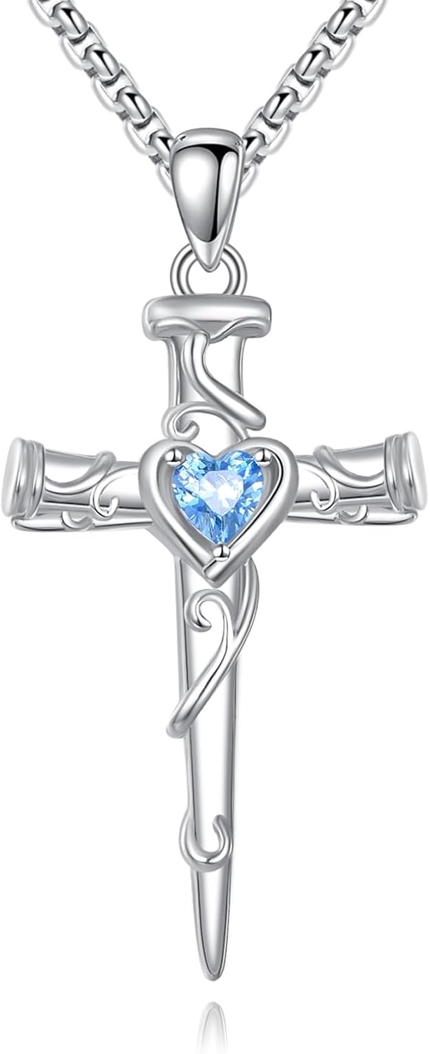 Nail Cross Necklace 925 Sterling Silver Heart Nail Crucifix Pendant Christian Jewelry Gifts for Men Women