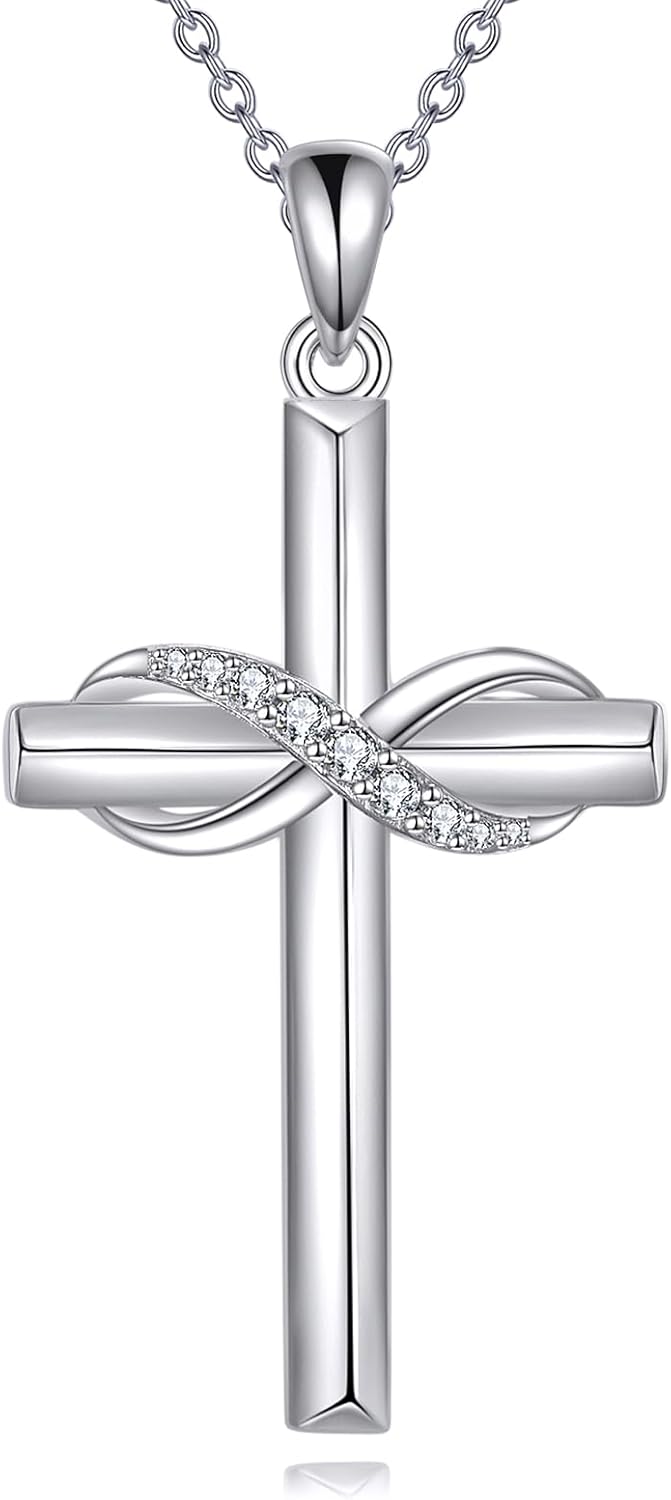 LUHE Cross Necklace for Women Sterling Silver Cross Pendant Necklace Religious Jewelry Christian Gifts