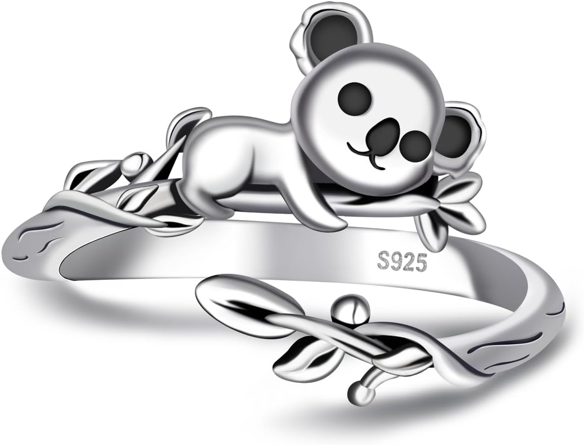 925 Sterling Silver Koala Ring - Cute Animals Adjustable Rings Koala Open Ring Jewelry Gifts for Women Daughter Sister Granddaughter