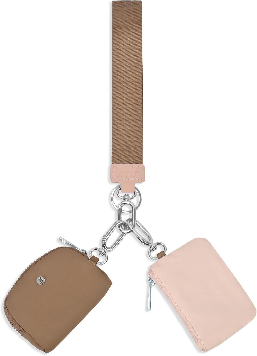 NGIL Dual Keychain Pouch Wristlet, Detachable Portable Wallet Mini Coin Purse for Women Dual Mini Wallet Coin Pocket Keychain (Dual Pouch, Khaki/Brown)