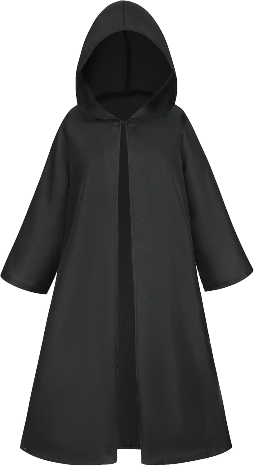 Kids Knight Costume with Hooded Cloak, Medieval Halloween Wizard Tunic Robe for Boys Girls, Cosplay Cape Ages 4-15