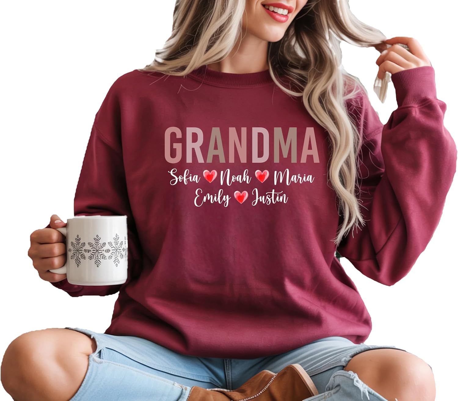 Personalized Grandma Sweatshirt with Grandkids Names | Custom Mama Shirt with Kids Names | Custom Mom T-Shirt | Personalized Grandma Gift | Mama Mommy Nanny T-Shirt Black