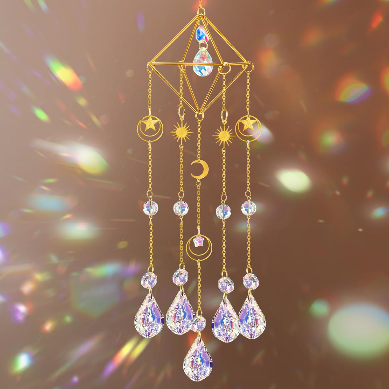 - Crystal Suncatcher: Featuring a charming celestial design, this sun catcher blends artistic beauty with symbolic meaning. The delicate sun and moon create a timeless piece that adds a touch of serene, mystical charm to your home's decor.