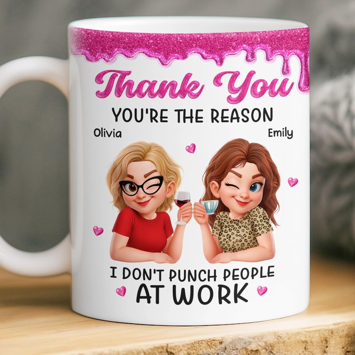 Custom 3D Inflated Effect Printed Mug, Personalized Retirement Gifts For Women, Besties, Sisters, BFF, You’re My Work Therapy, Best Friend Gift for Women, Womens Birthday Gift