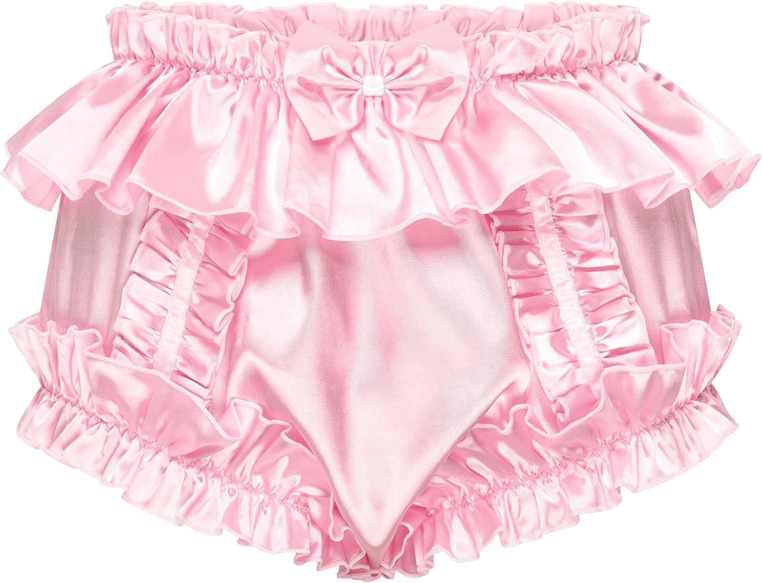 Satini Sissy Frilly Ruffled Silky Satin Full Coverage Adult Diaper Cover Briefs Lingerie Underwear Panties