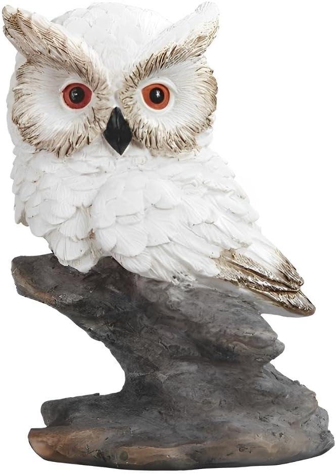 ICE ARMOR 4.5" H White Owl Sitting on Rock Figurine Statue Sculpture Ornament Decoration Home/Room Decor Ideas for Housewarming, Holidays and Birthdays Great Collectible Addition