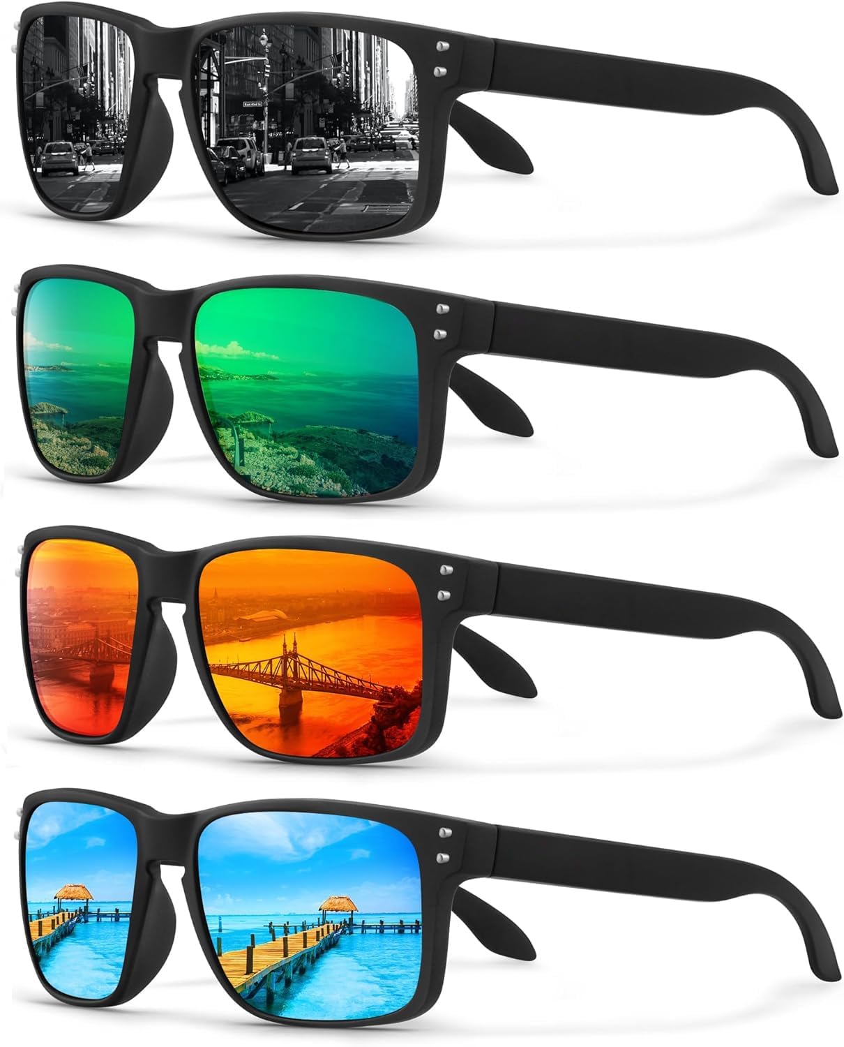 4 Pack Polarized Sunglasses for Men Women Sports Driving Fishing Glasses UV400 Protection