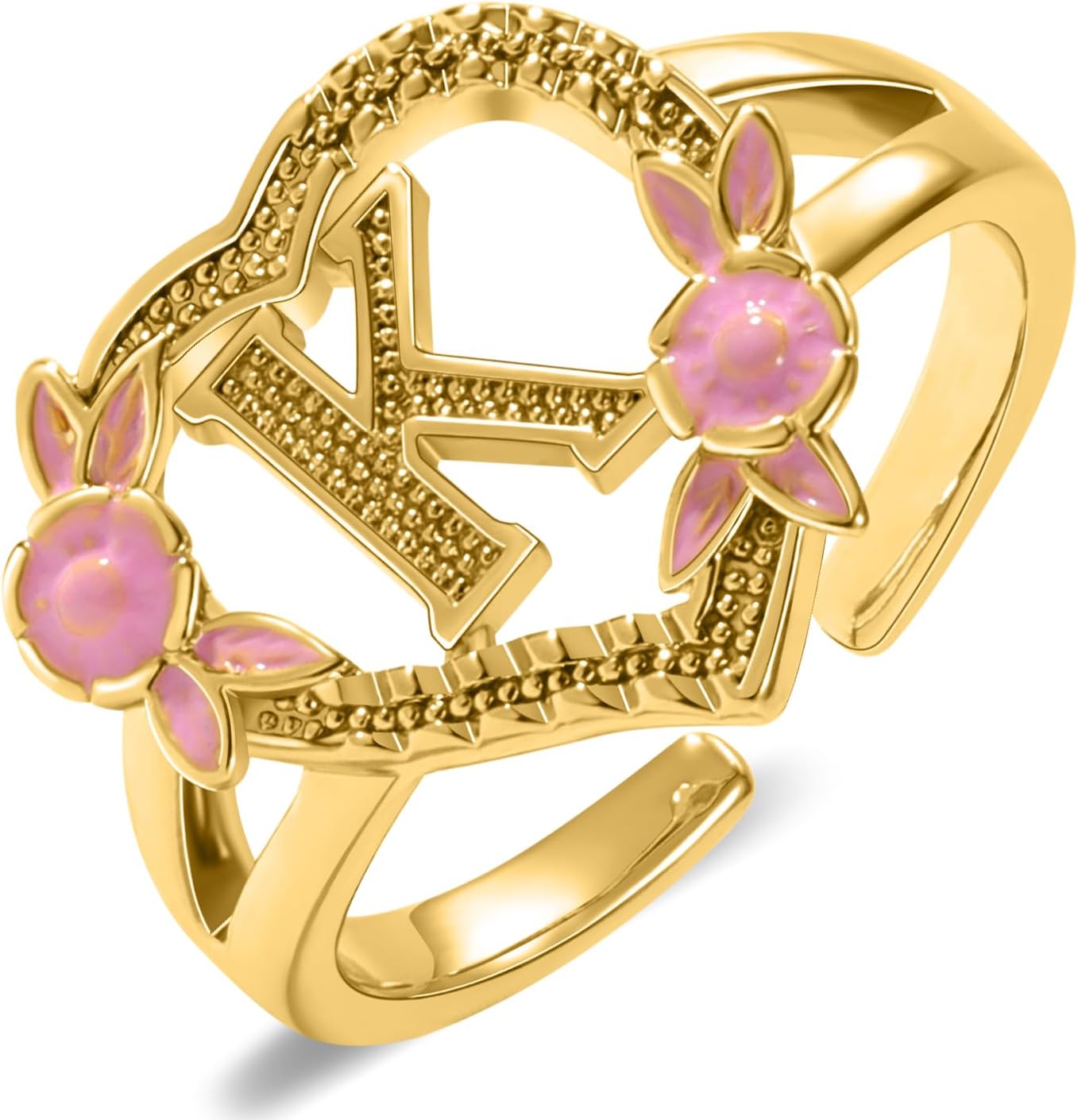 Gold Initial Rings for Women - Non Tarnish Dainty 14K Gold Plated Heart Adjustable Letter Rings for Women, Stackable Cute Thumb Pinky Fashion Open Simple Birthday Gifts Jewelry