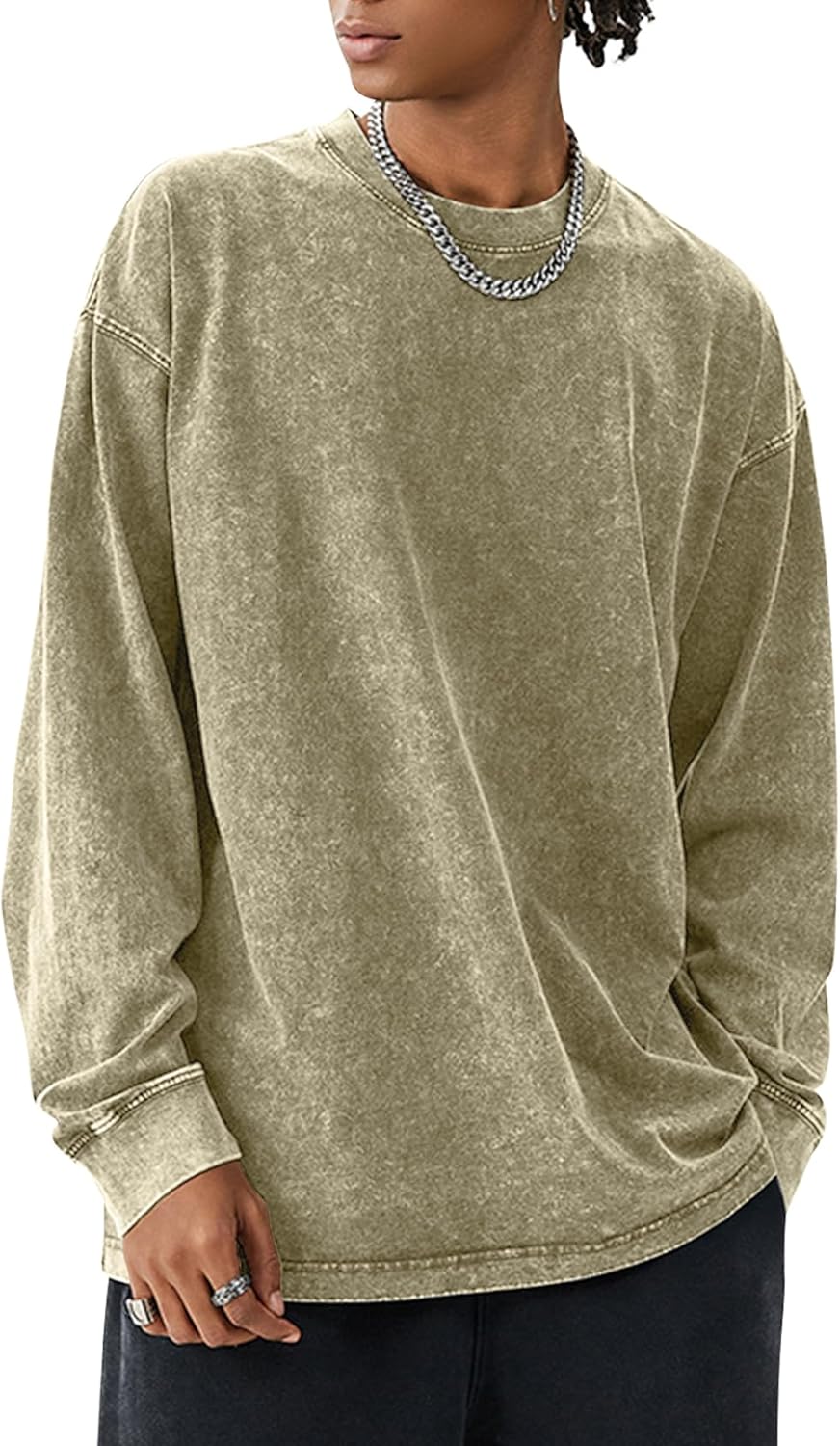 COZYPOIN Men's Acid Wash Tshirts Shirts Oversized Vintage Long Sleeve Pullover Crewneck Sweatshirt