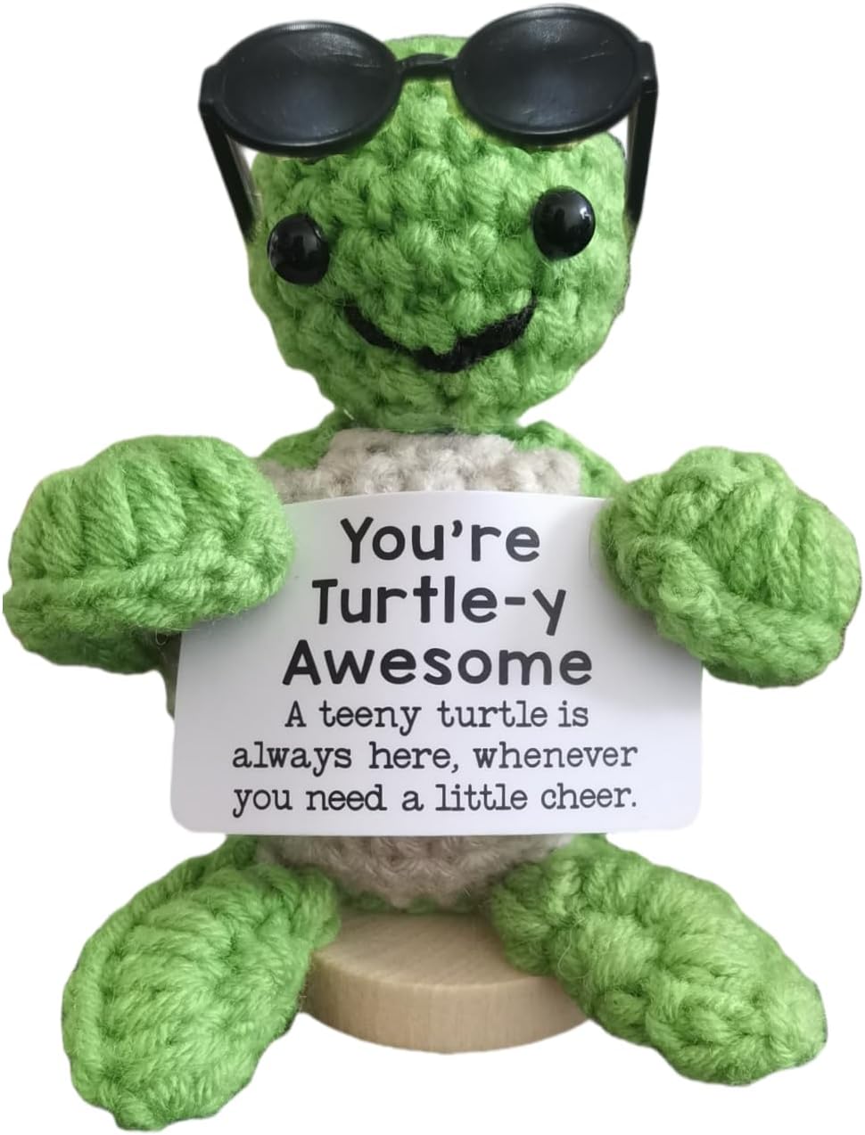 - 【For Emotional Support & Mental Wellness】Crafted With Hypoallergenic Cotton Yarn And Soft Stuffing, This 6-Inch Sea Turtle Plush Features A Cheerful Design With Black Glasses And A White Tag Saying “You’re Turt-ly Awesome!”. Ideal As A Mental Health Gift Or Emotional Support Companion For Women, Teens, Or Anyone Needing Daily Encouragement.