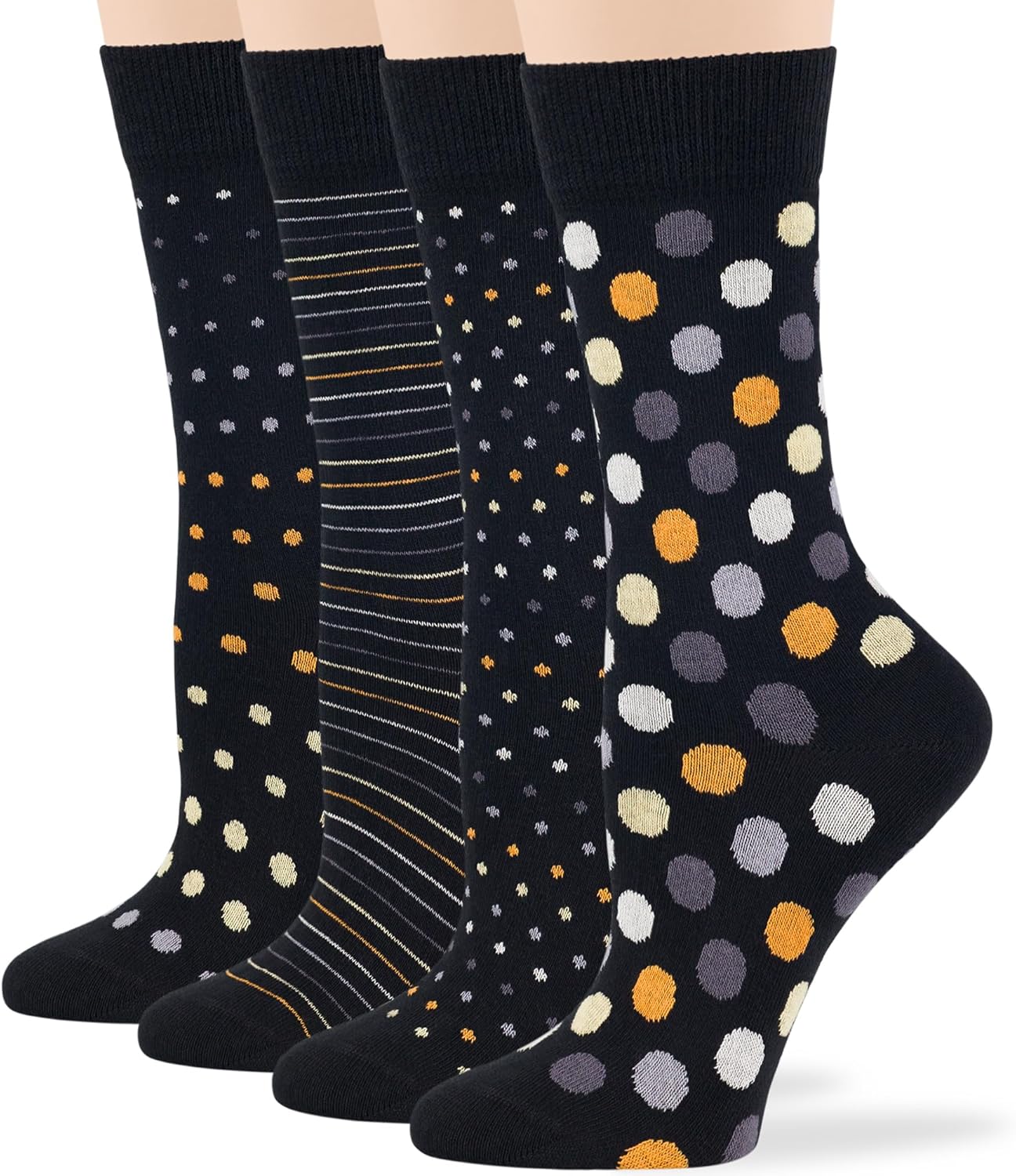 7BigStars Women Crew Socks - Fun Cotton Socks for Women, Colorful and Cute Designs, 4 Pairs Breathable Casual Dress Socks