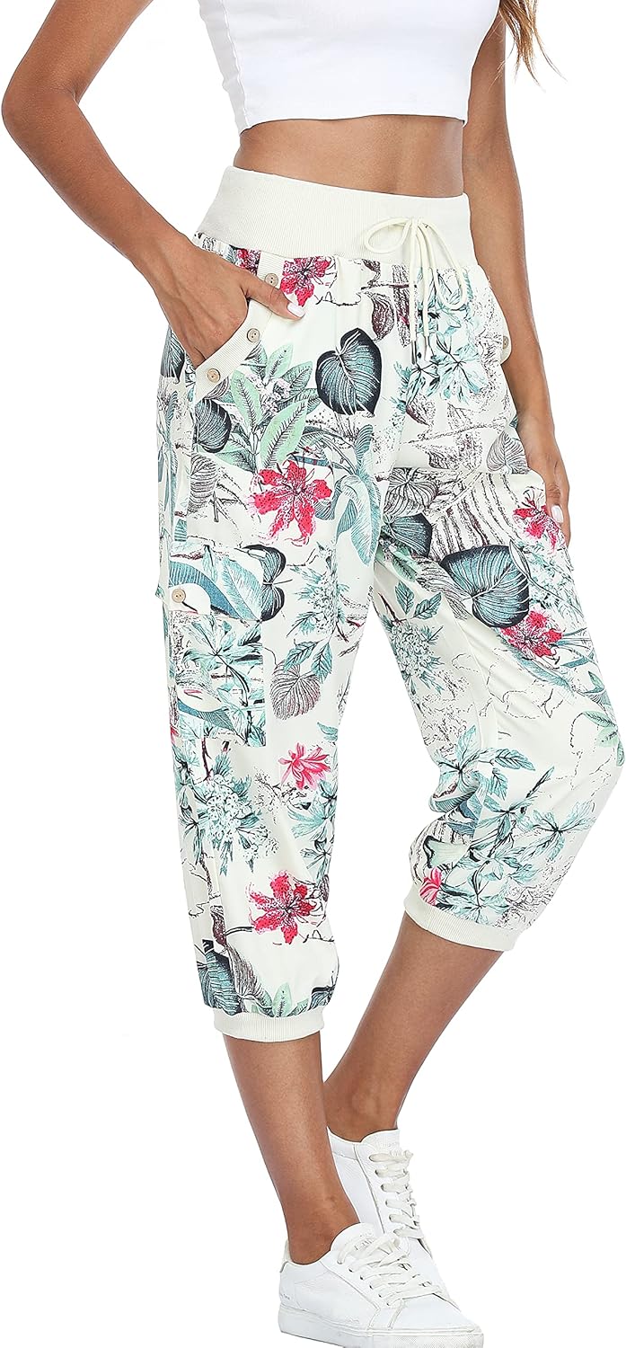 MISS MOLY Women's Cargo Capris Travel Pants Button Decor Summer Loose Harem Sweatpants Stylish Soft with Pockets