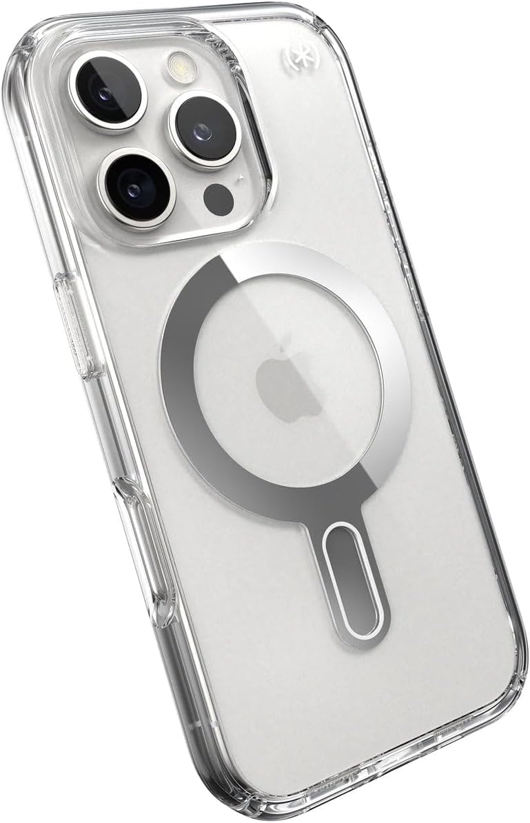 Speck Clear iPhone 16 Pro Case MagSafe and ClickLock - Slim Phone Case iPhone 16 Pro - iPhone 16 Pro Phone Case - Presidio - Clear/Chrome