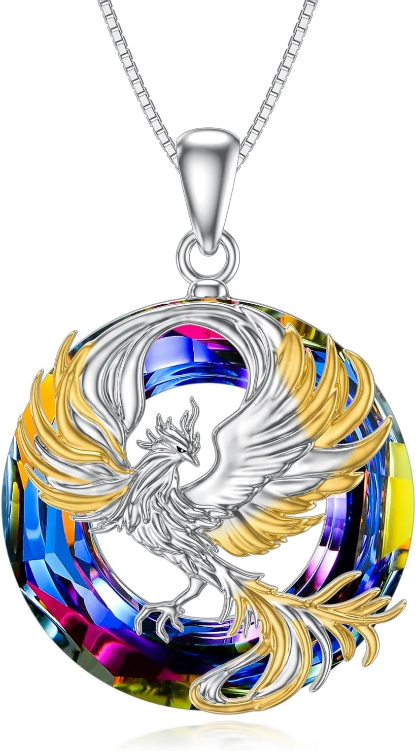 Phoenix Necklace 925 Sterling Silver Crystal Necklace Pendant Phoenix Rising Jewelry Christmas Gifts for Women