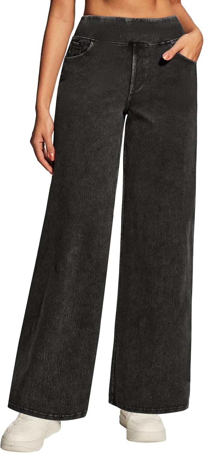 Heathyoga Wide Leg Jeans Woman High Waist Pull On Baggy Jeans for Women Stretchy Jean Pants Straight Leg Denim Pants