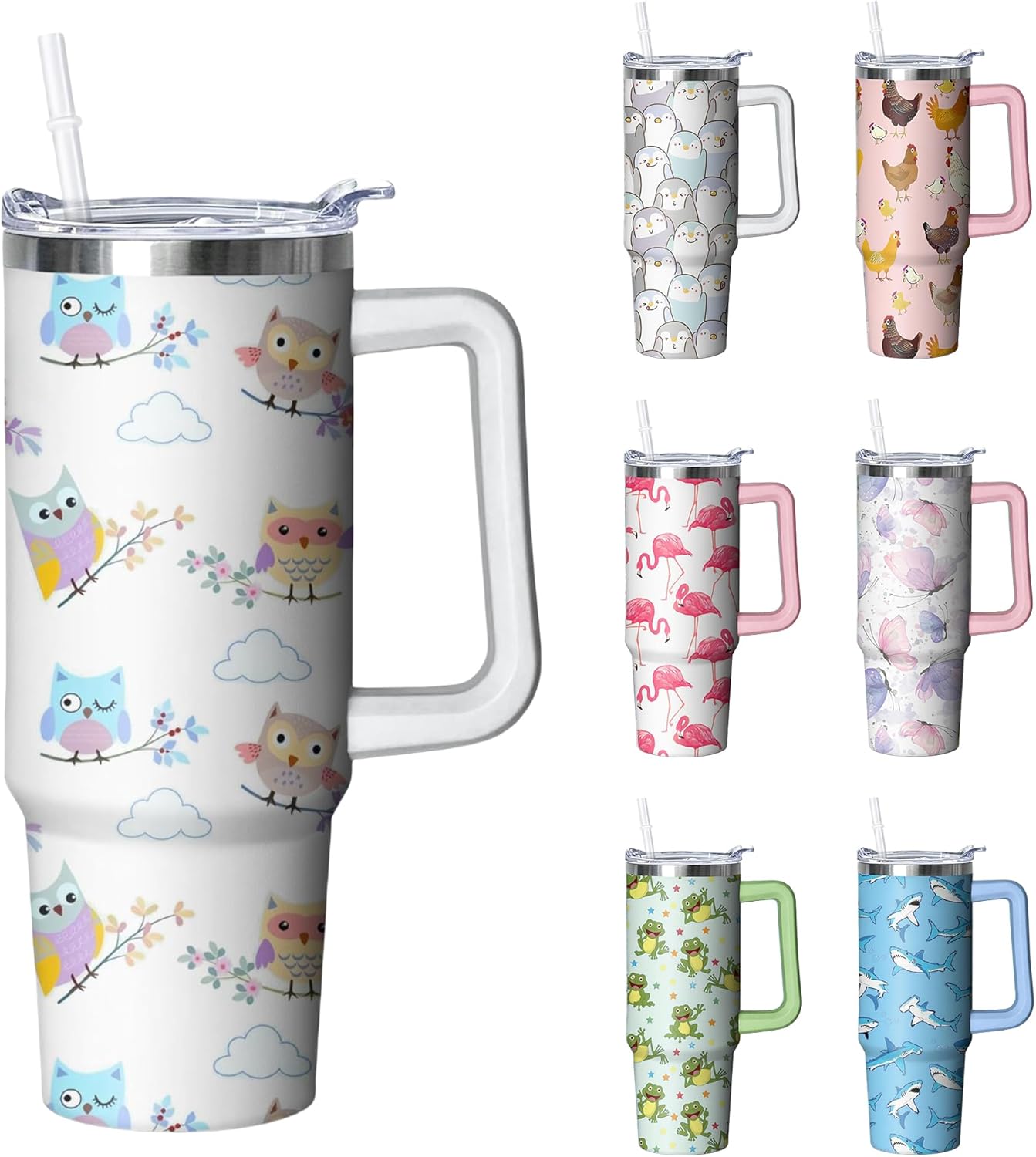 30 oz Owl Tumbler with Handle and Straw, Insulated Stainless Steel Cup with Lid, Travel Coffee Mug Water Bottle, Gifts for Woman Animal Lovers
