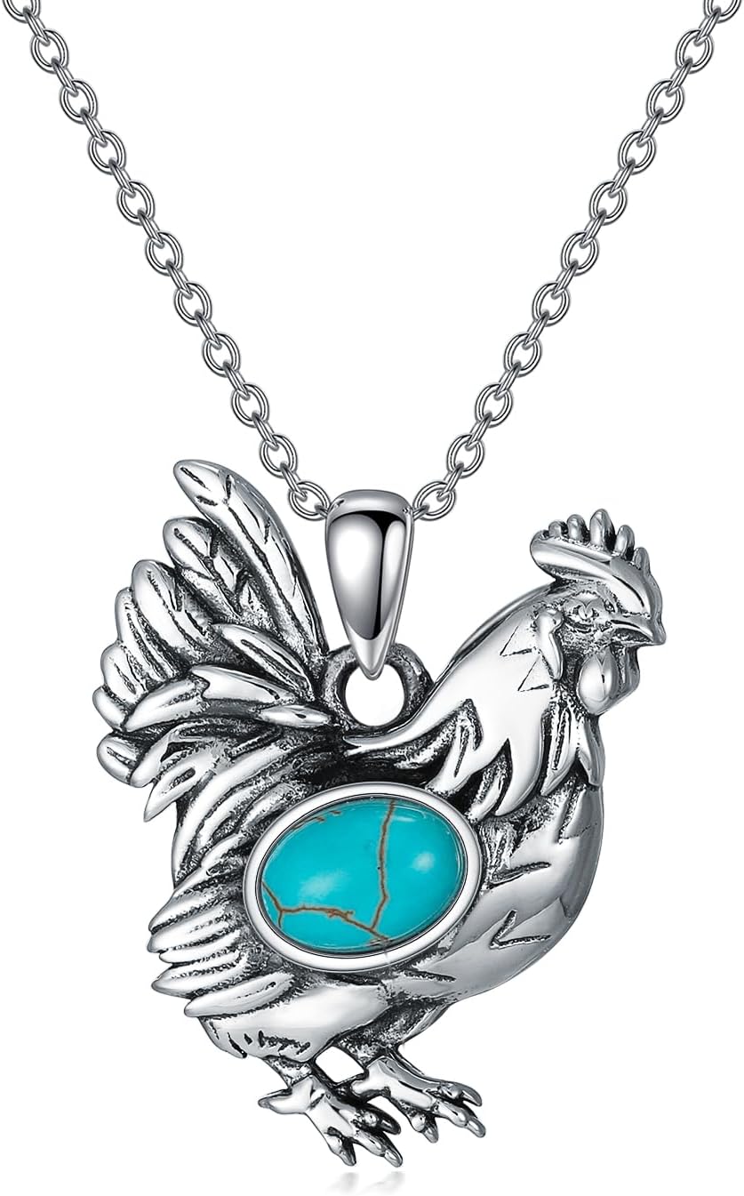Chicken Necklace 925 Sterling Silver Genuine Gemstone Hen Pendant Chicken Jewelry Gifts for Women