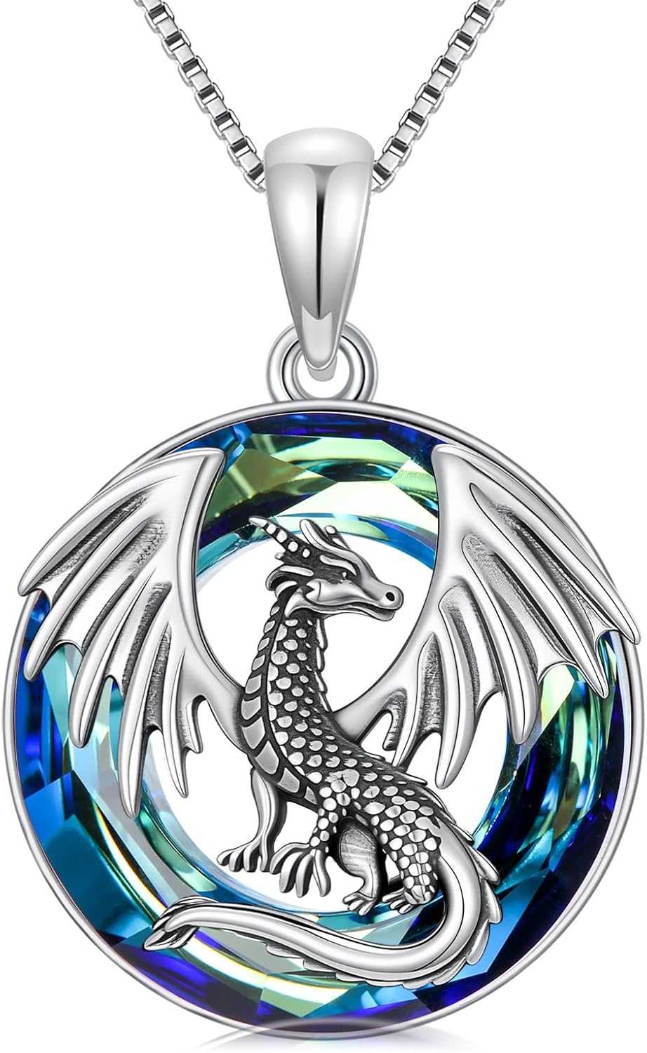 TOUPOP Dragon Necklace for Women 925 Sterling Silver Dragon Pendant Necklace with Crystal Jewelry Birthday Christams Gift for Her Mom Daughter Wife