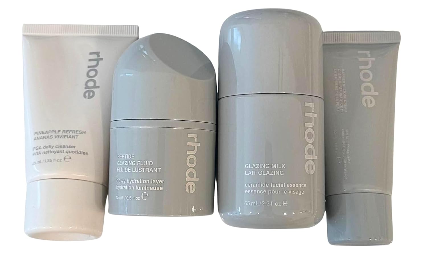 Rhode Mini Skincare Kit – 4-Piece Travel-Size Set with Pineapple Refresh Cleanser (1.35 fl. oz), Glazing Milk (1 fl. oz), Peptide Glazing Fluid (0.5 fl. oz), and Barrier Restore Cream (1 fl. oz)