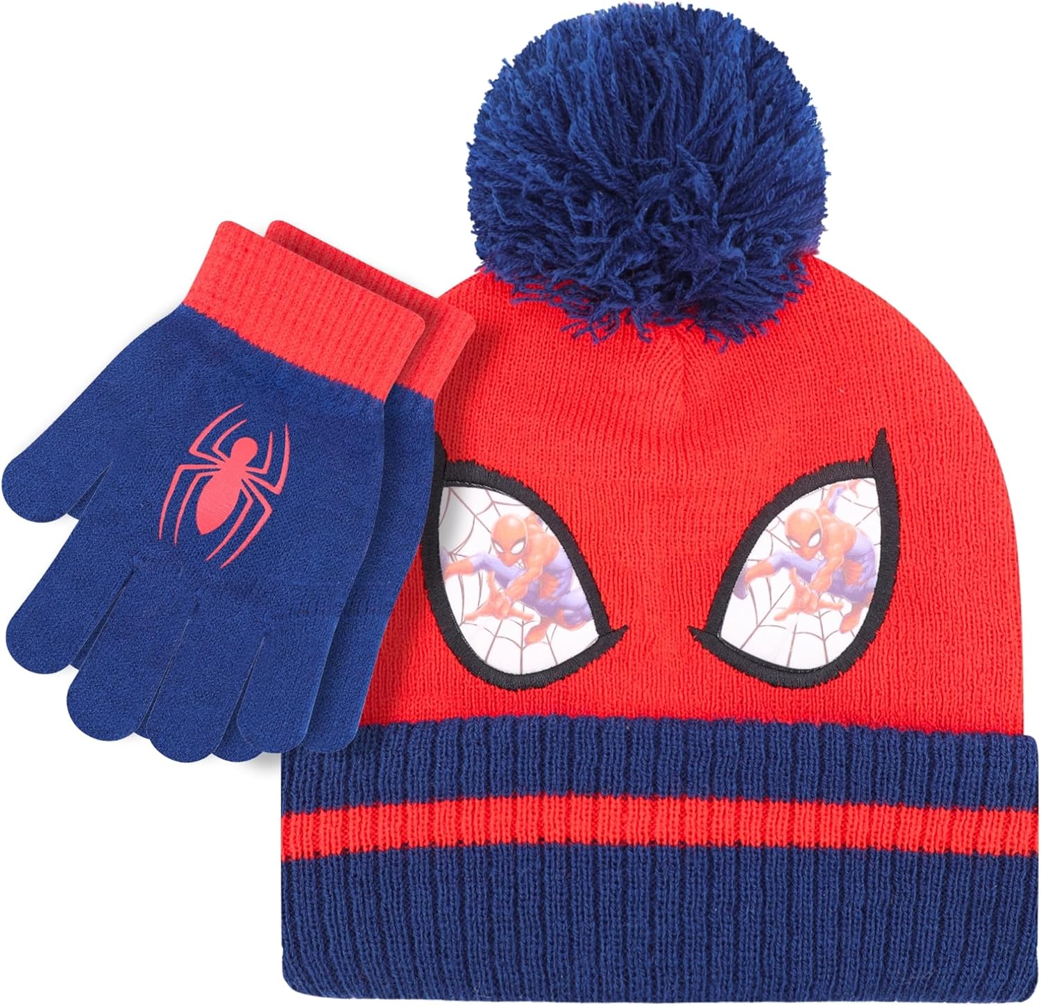 Marvel Spider-Man Kid’s Winter Hat and Snow Gloves for Boys and Toddlers, 2 Pc. Set, Pom-Pom Beanie with Warm Mittens