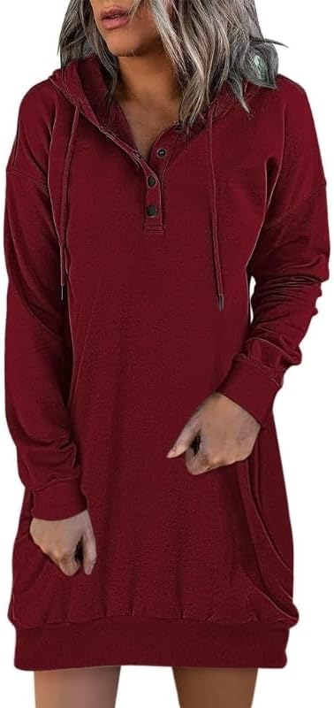 Long Sleeve Hoodies Dress for Women Button Oversized Sweatshirts Fall Winter Trendy Casual Long Sweater Dresses