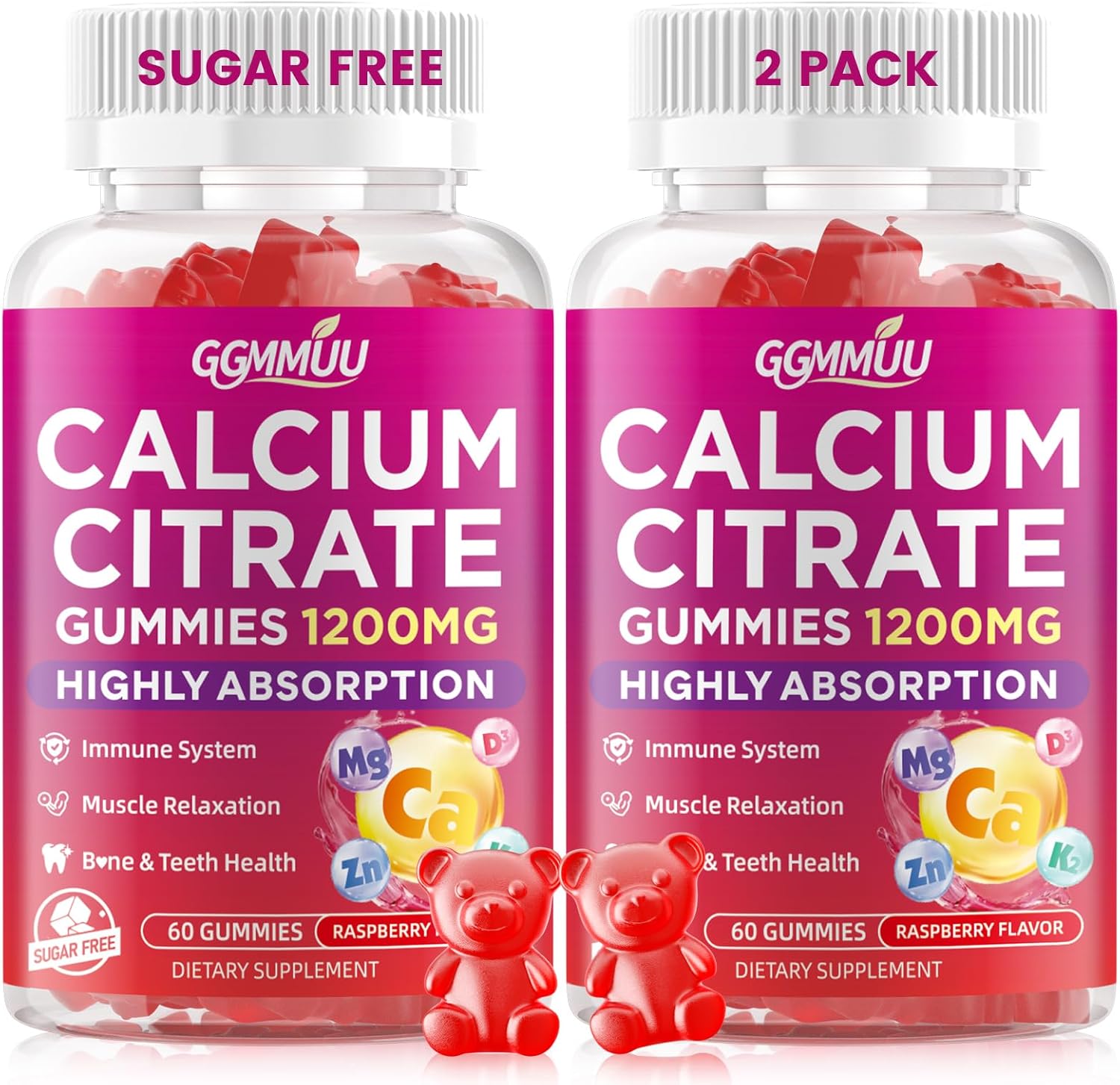 - Calcium Citrate 1200 mg - GGMMUU calcium citrate gummies deliver a potent 1,200 mg of calcium per serving, can offer optimized absorption and bioavailability, ensuring that your body can efficiently absorb and utilize the essential calcium it needs, helping to support energy and maintain a healthy immune system