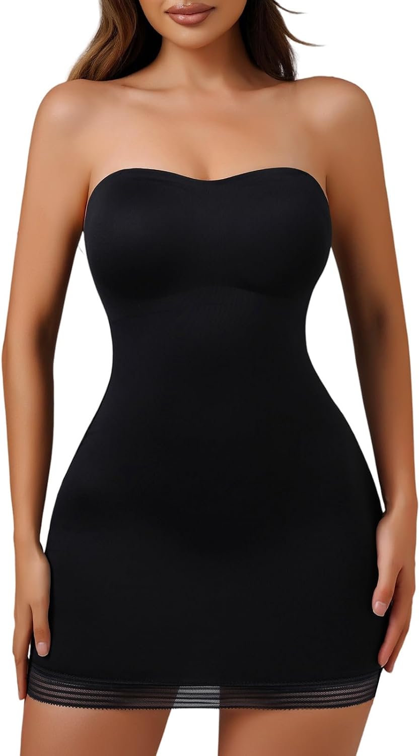 Shapewear Slip Dress for Women Under Dress Seamless Tummy Control Slip Dress Plus Size Smoothing Cami Dress Slips