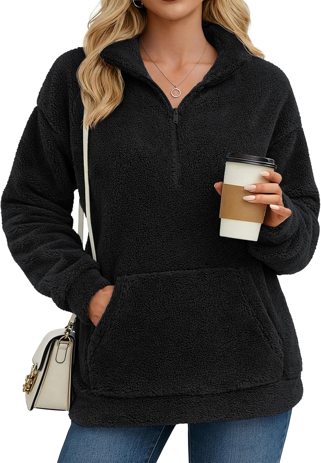 YUCOLEN Fleece Pullover Women Long Sleeve Fuzzy Half Zip Sweatshirt with Pockets Warm Winter Spring Jacket 2026 Trendy