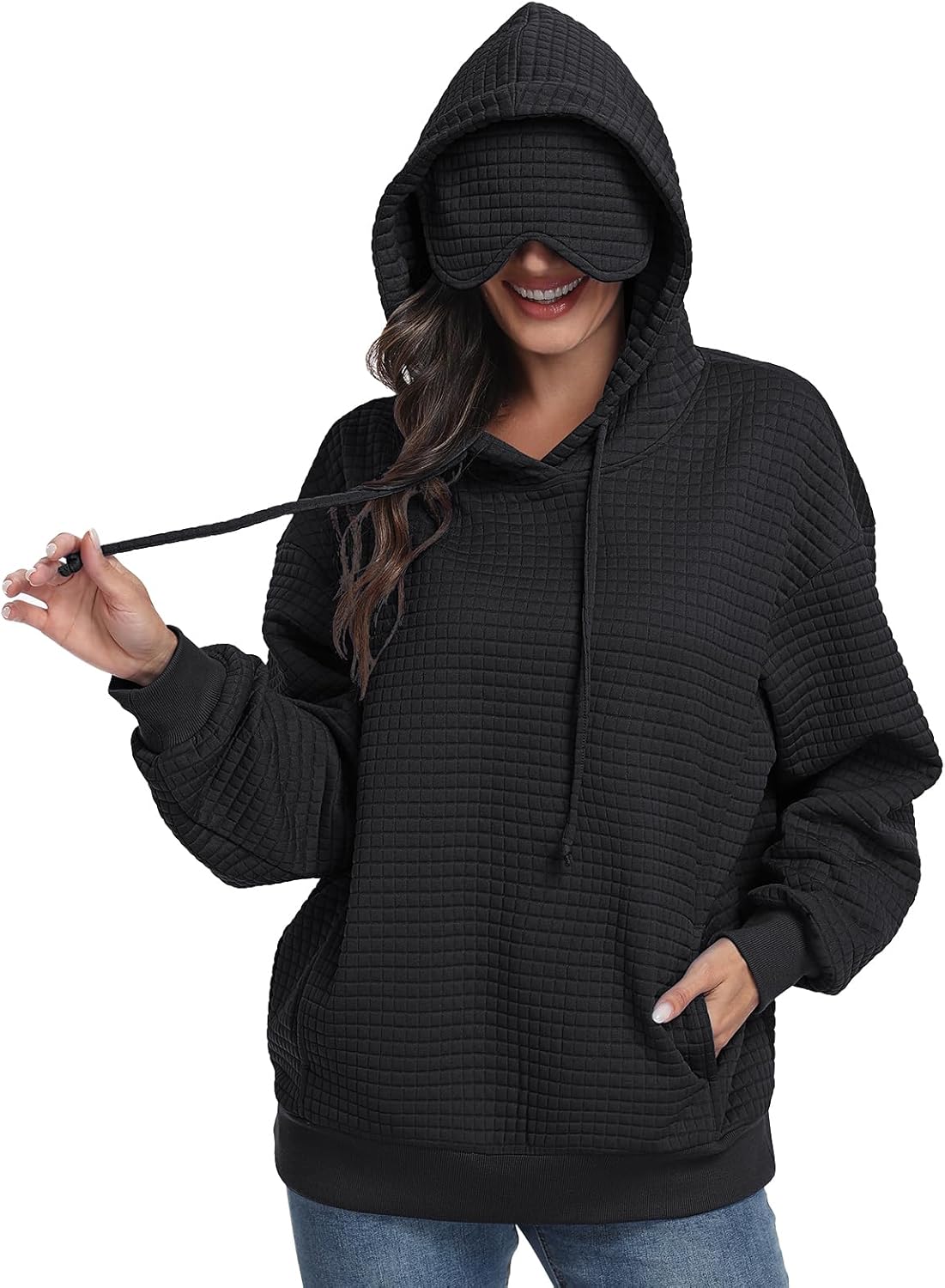 SeSe Code Hoodie With Eye Mask Waffle Hooded Sweatshirts Womens Travel Airplane Sleep Hoodies Mens Oversized Pullover