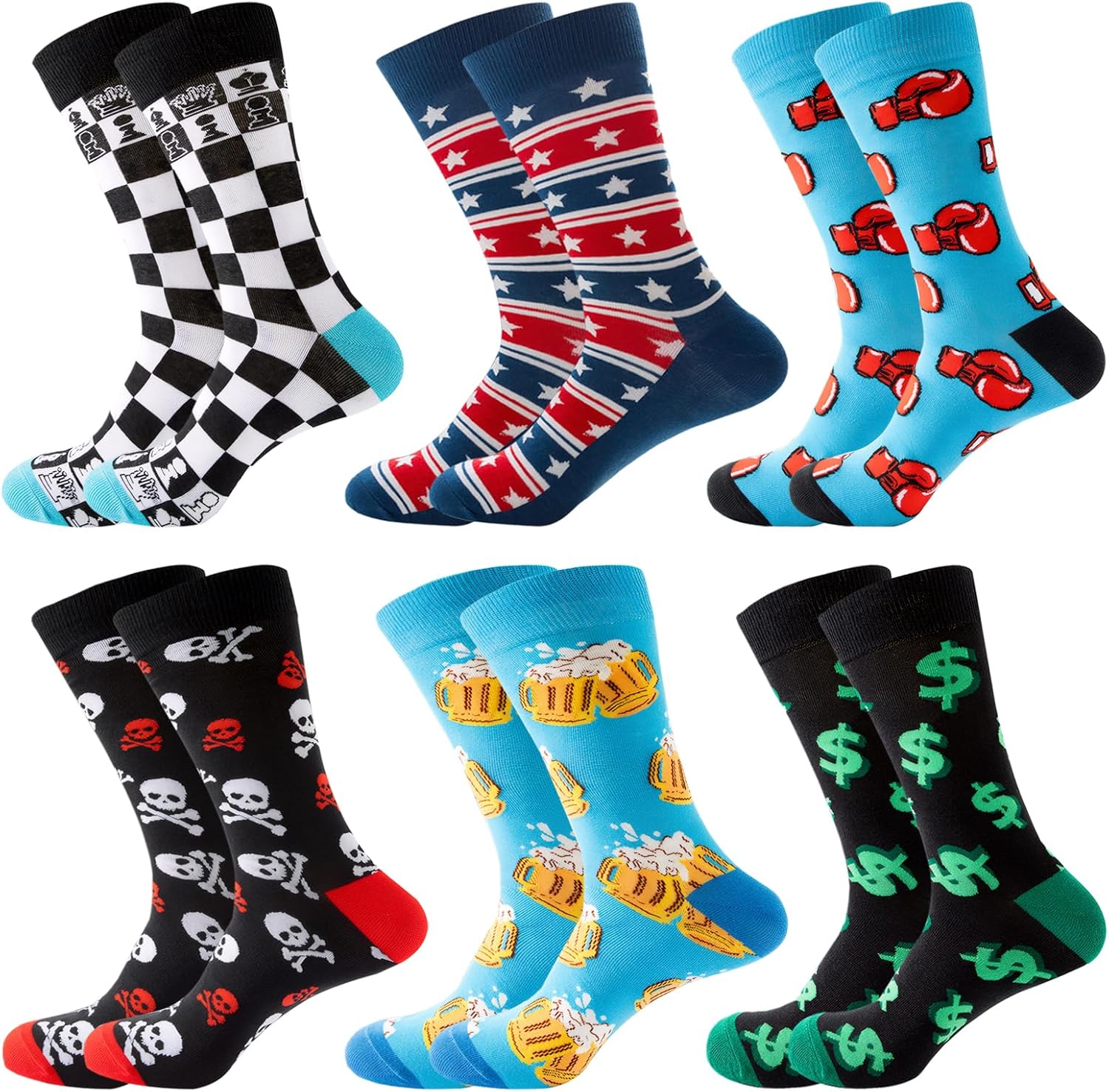 DRASEX Men's Colorful Dress Socks Novelty Funny Fancy Funky Pattern Combed Cotton Casual Crazy Crew Socks