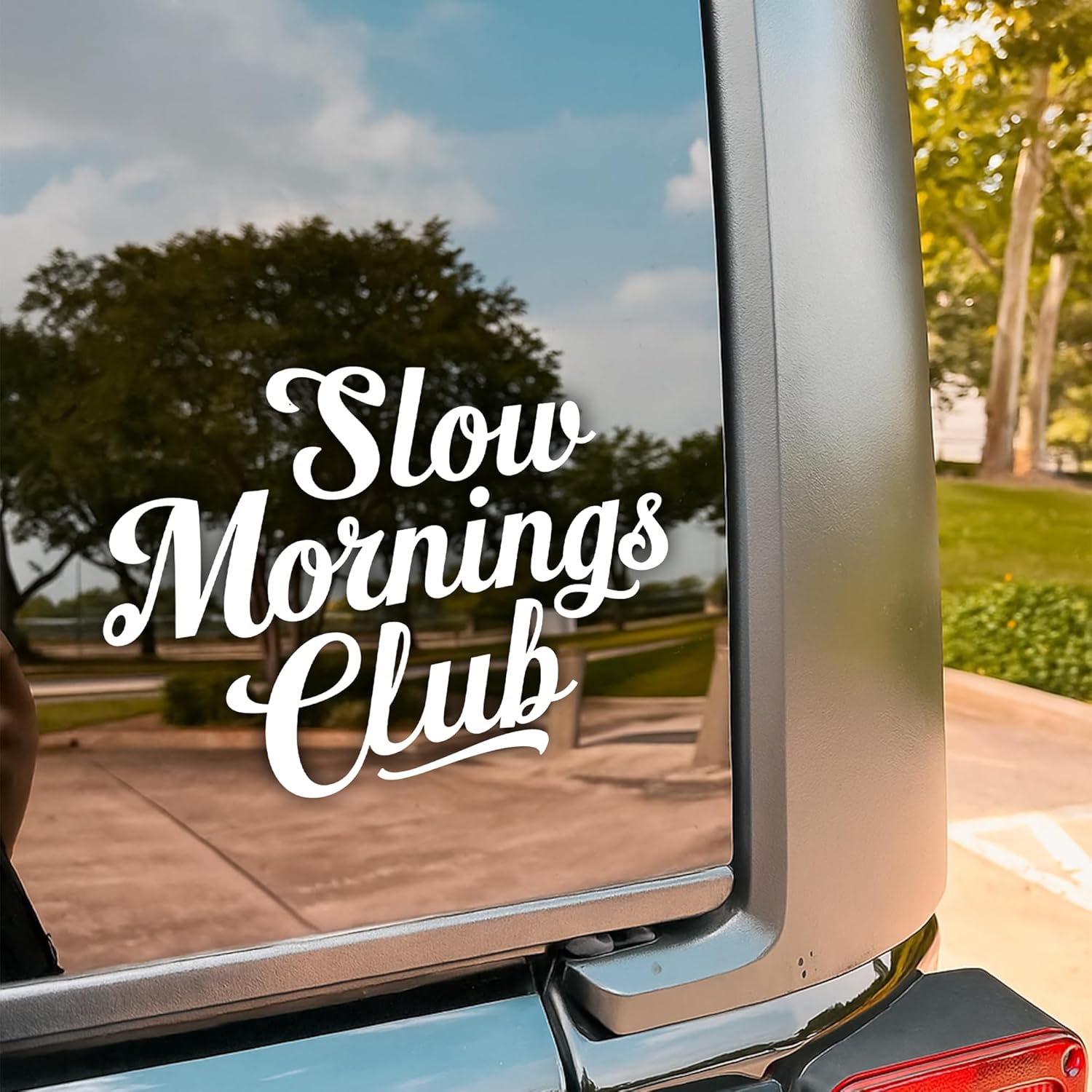 Slow Mornings Club Car Decal, Funny Morning Routin, Coffee Lover Stickers Inspiration Decals, Vinyl Waterproof 8 inch Bumper Sticker for Trucks Window, Car Accessories Gifts for Friend Mom Dad