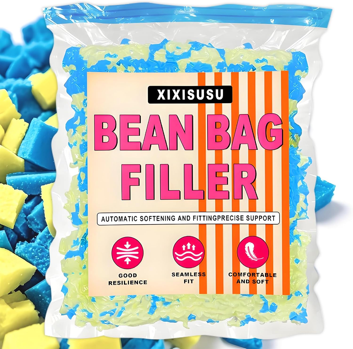 - Multi-Purpose Bean Bag Stuffing - Great for DIY Projects; Beyond bean bag chair filler, use this shredded memory foam for pet beds, floor cushions, or crafts. The 1LB quantity is perfect for small repairs or testing firmness. Cleaner and more durable than traditional bean bag stuffing options.