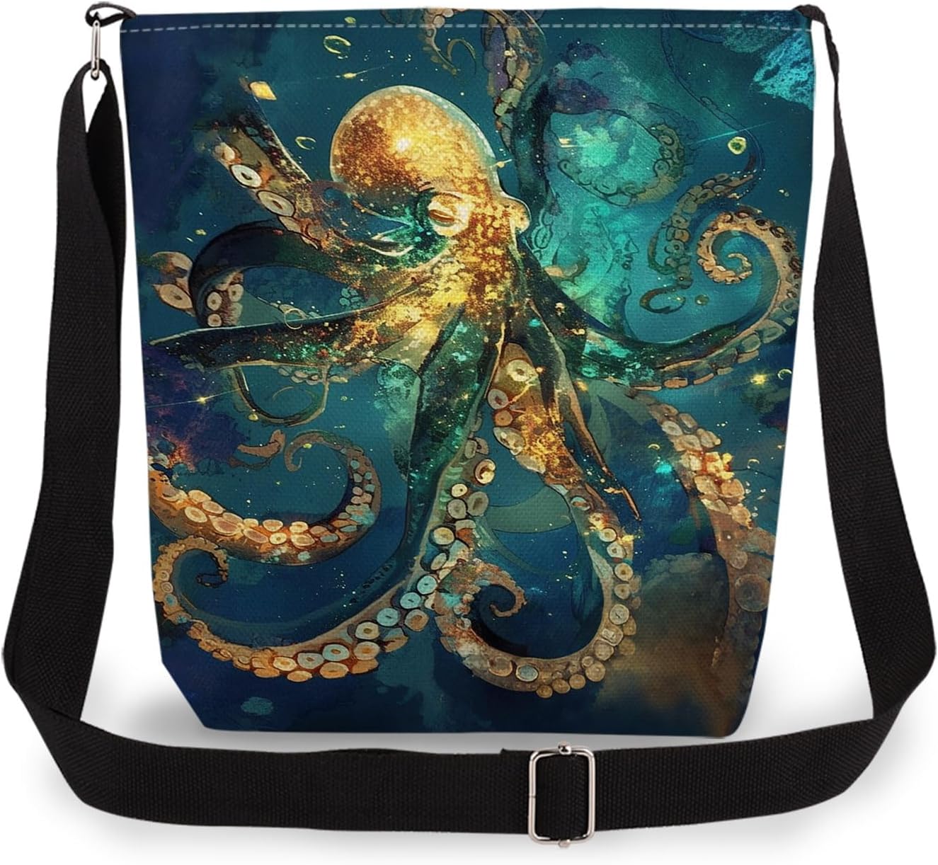 Octopus Print Canvas Crossbody Bag, Adjustable Strap Lightweight Purse with Top Zipper & Inner Pocket, Daily Shoulder Bag Gift for Women