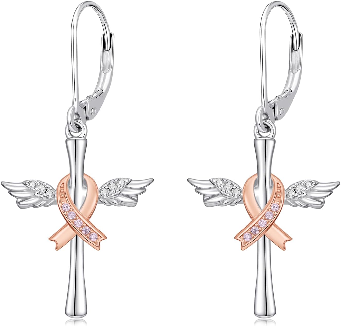 Breast Cancer Survivor Gifts for Women Pink Ribbon Earrings 925 Sterling Silver Dangle Drop Earrings Breast Cancer Awareness Jewelry Survivor Gift for Patients