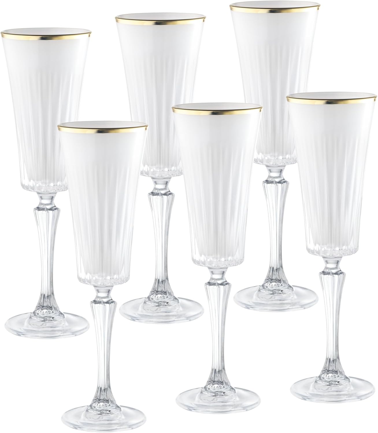 Barski Champagne Flute Glasses - White Colored with Gold Rim - Toasting Champagne Flute Glass - Wedding or Anniversary Flutes - Set of 6 - Gift Ready Colored Glasses - 7 oz - Made in Europe