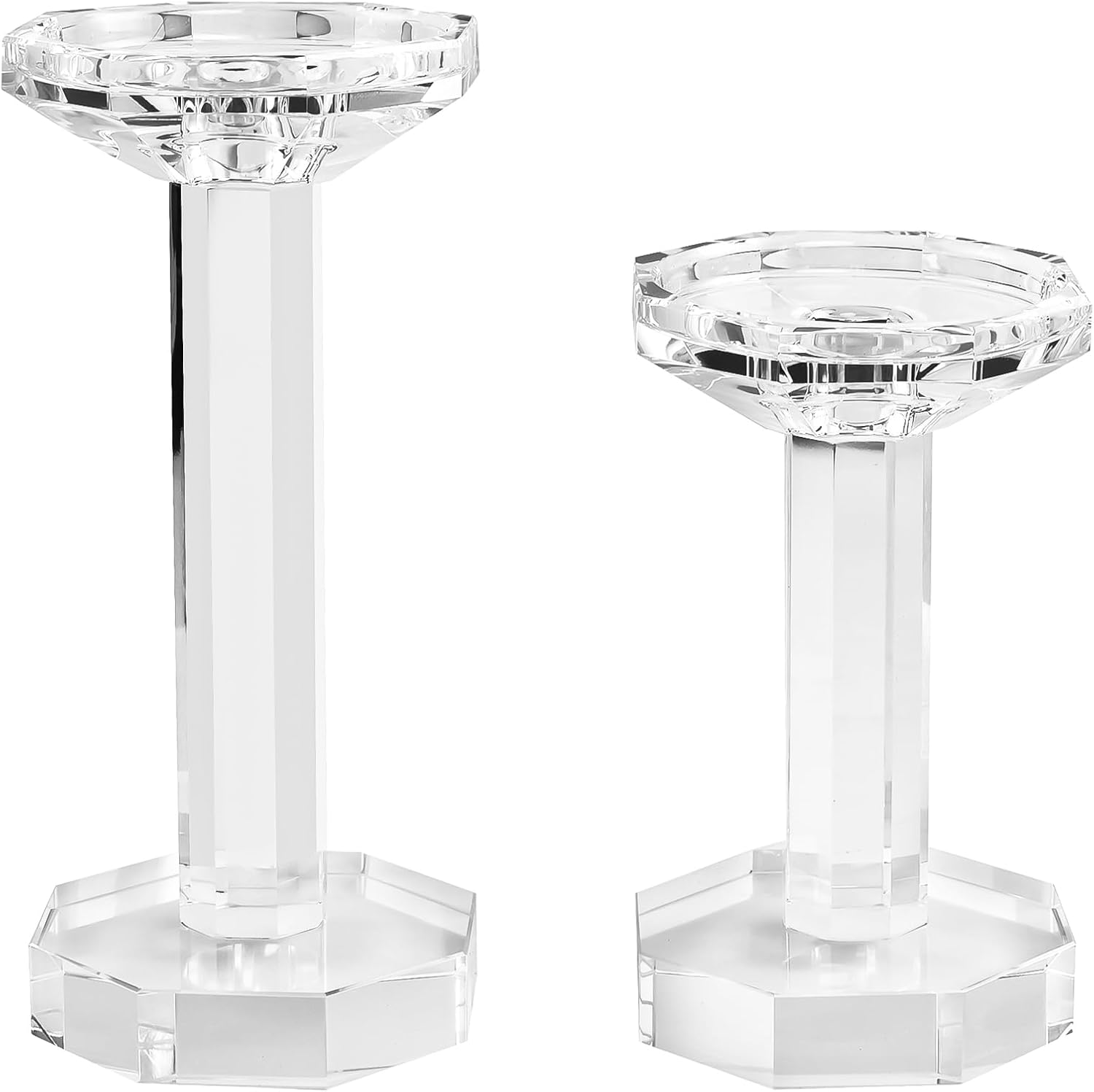 Crystal Candlestick Holders Set of 2, Clear Crystal Taper or Pillar Candles Holders, Table Centerpieces for Party and Wedding Decoration(6''/8'' Tall)