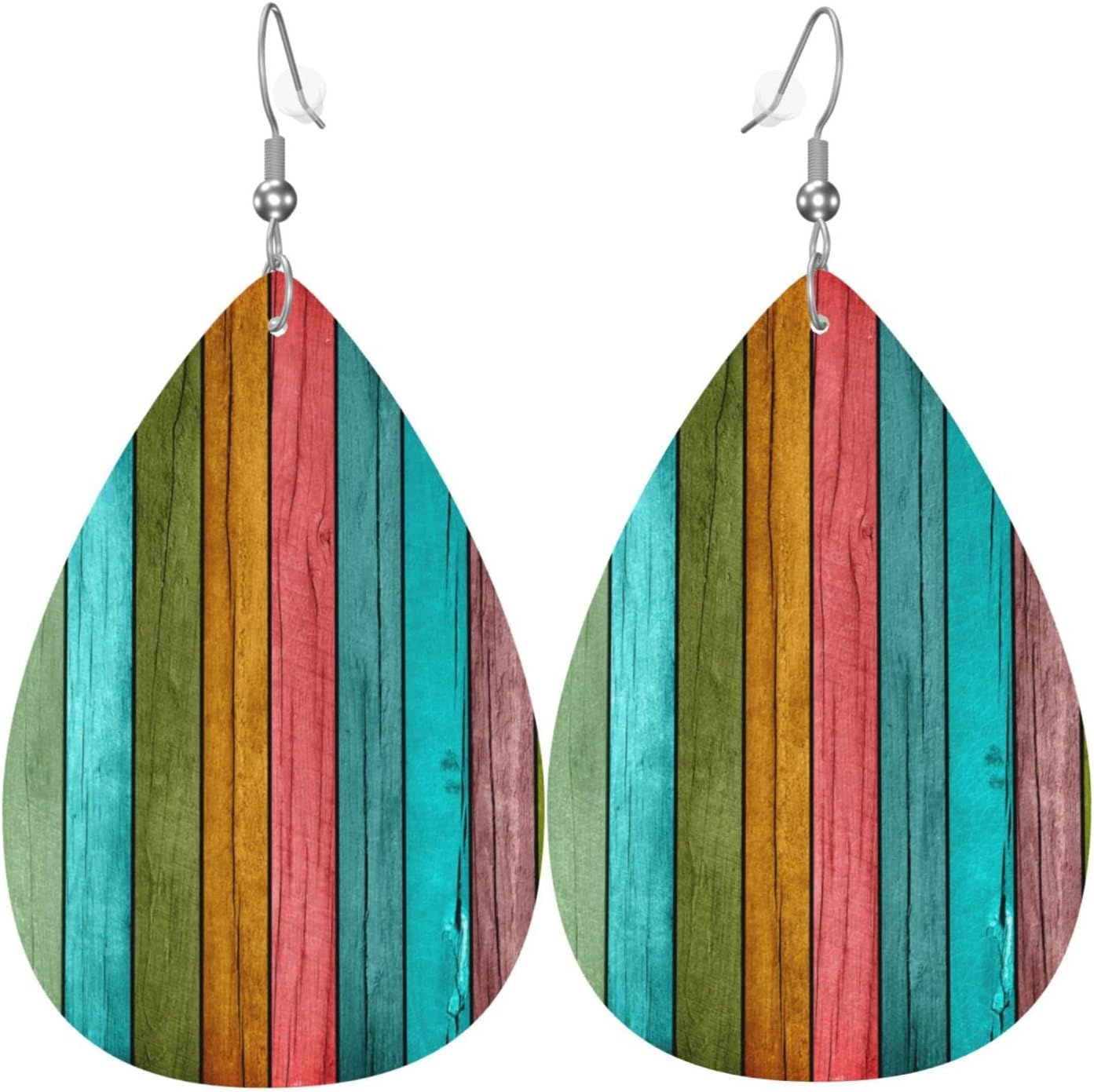 Vintage Wood Wooden Print Faux Leather Teardrop Earrings for Women Drop Dangle Earrings