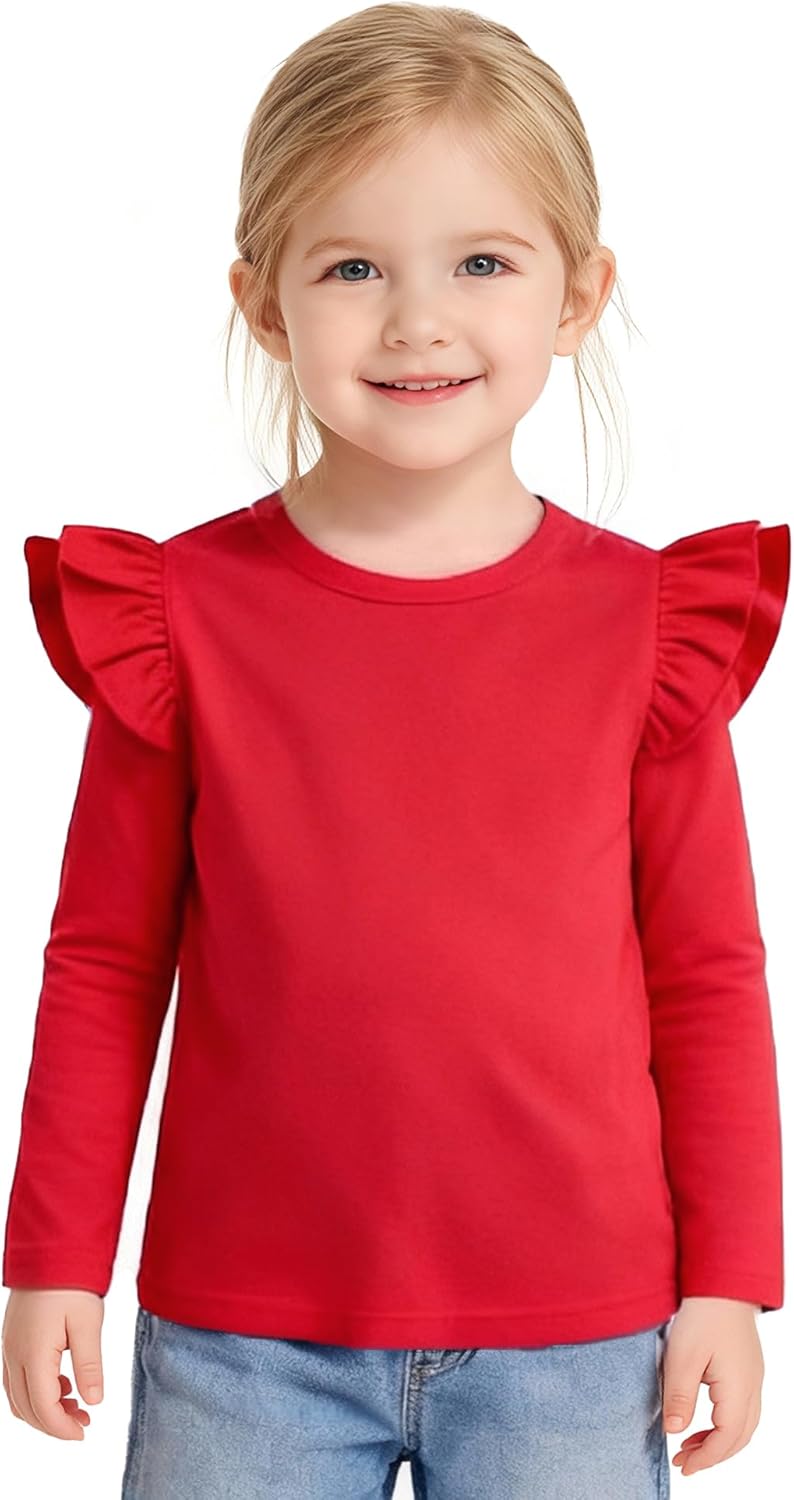 12M-14Y Toddler Baby Girls T Shirt Solid Color Blouse Ruffle Top Cotton Casual Tees Plain Shirt