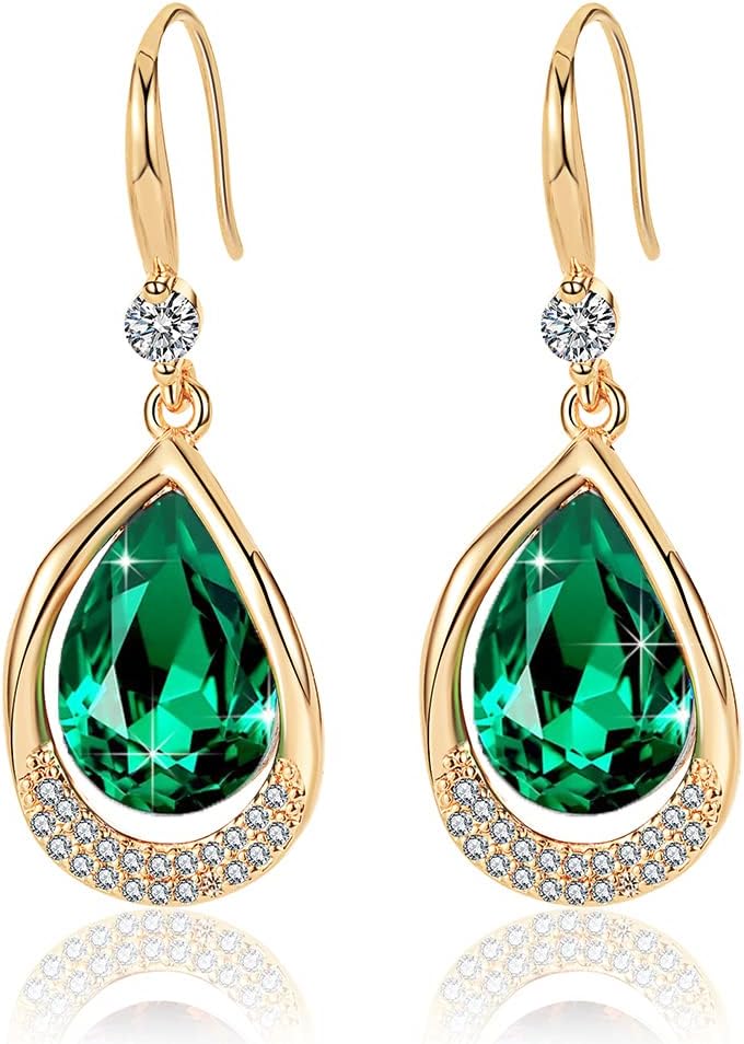 Austrian Crystal Halo Teardrop Hollow Drop Dangle Earrings for Women 14K Rose Gold Plated Hypoallergenic Jewelry Gifts