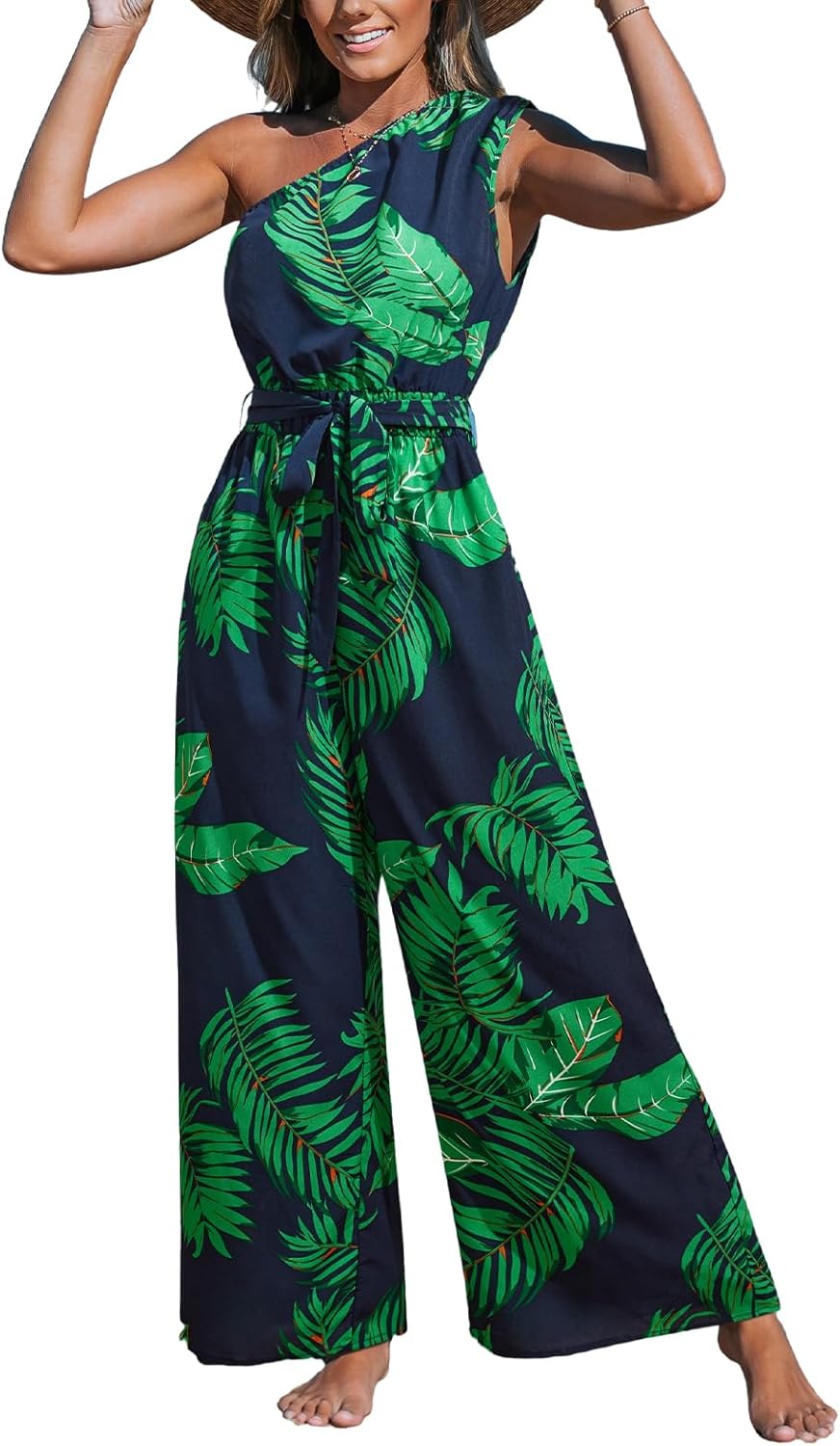 CUPSHE Women's Jumpsuits Sleeveless Floral One Shoulder Wide Leg Long Pants 2025 Trendy Travel Outfit Pocket