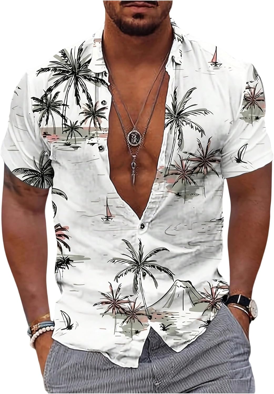 SweatyRocks Men's Short Sleeve Casual Shirts Button Down Tropical Hawaii Beach Summer Shirts