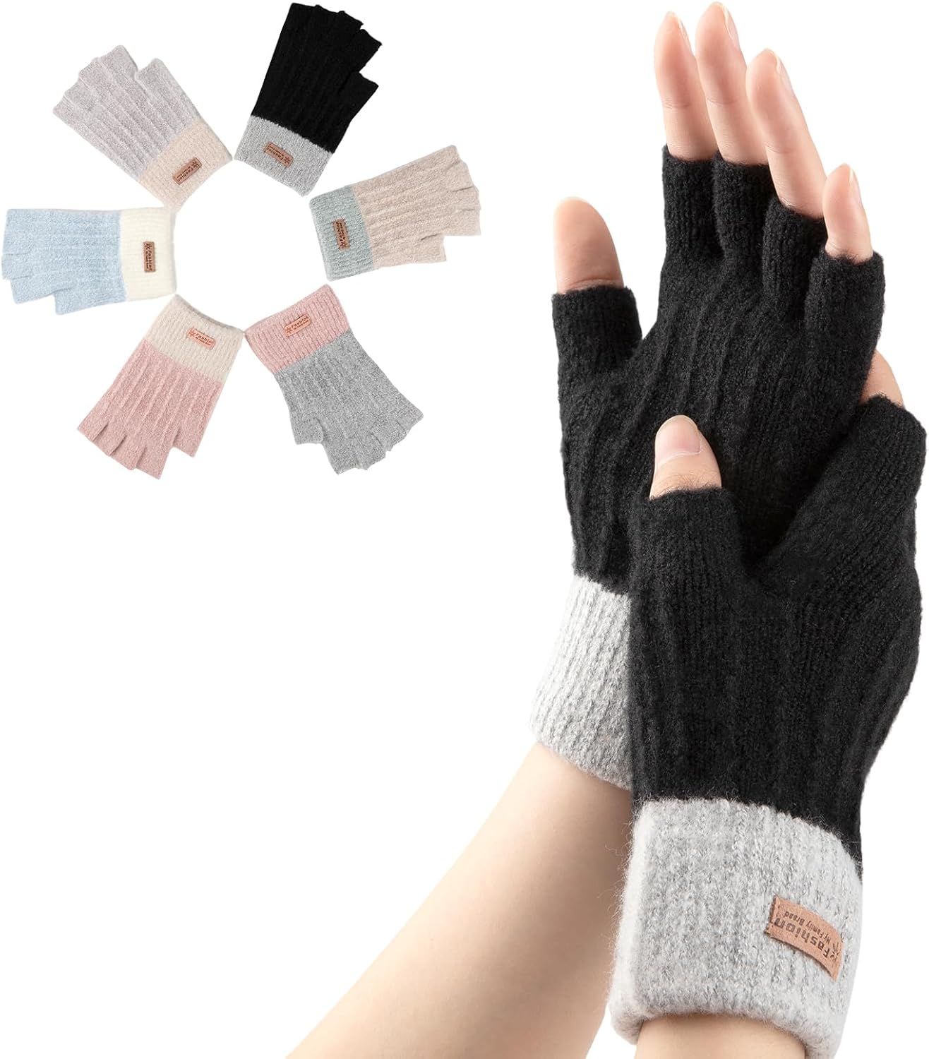 Fingerless Gloves for Women Winter Half Finger Gloves Knitted Fingerless Mittens for Typing Driving
