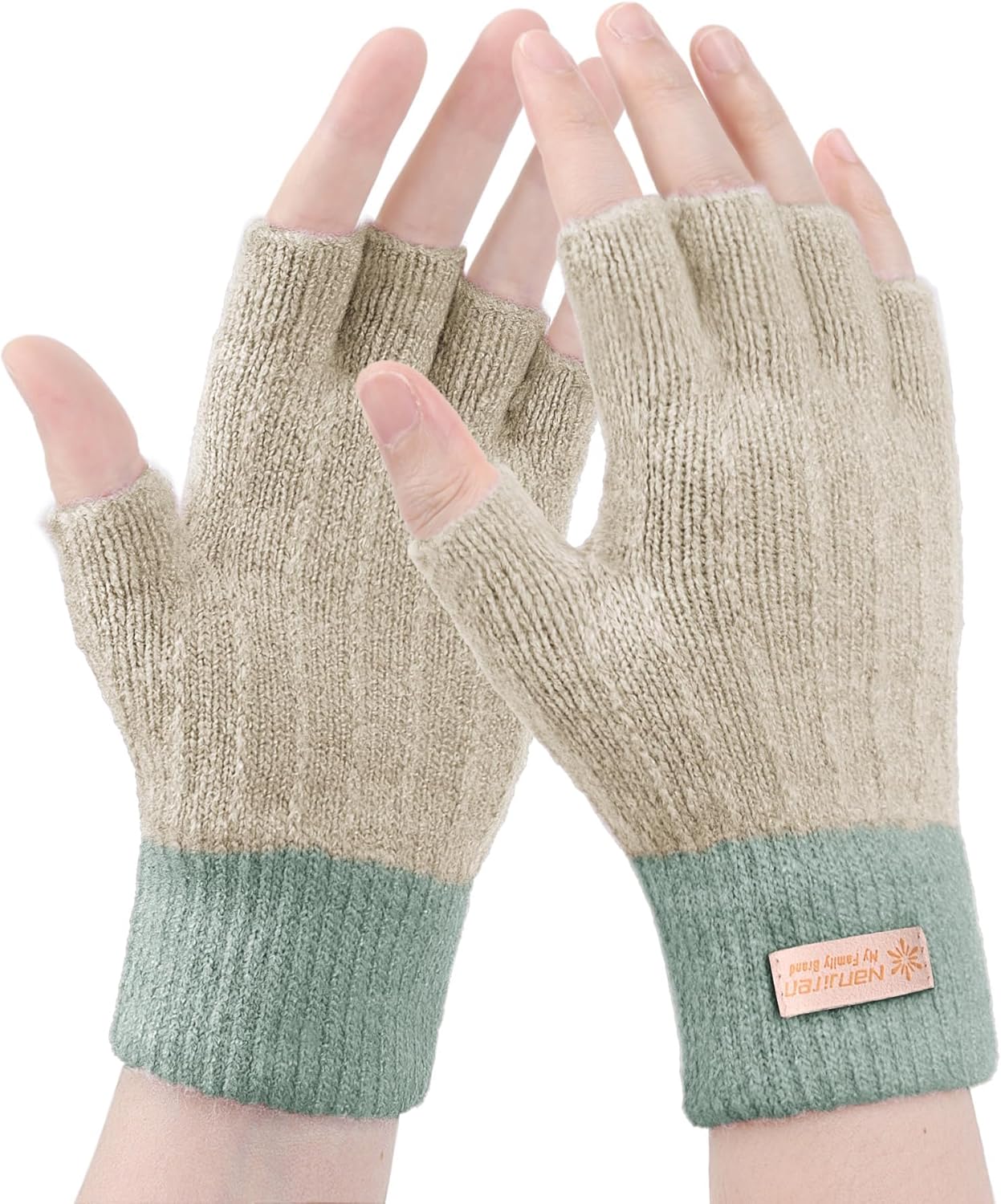 LADES Fingerless Gloves for Women Warm - Winter Thermal Gloves Knitted Soft Half Fingers Mittens for Driving Working Typing