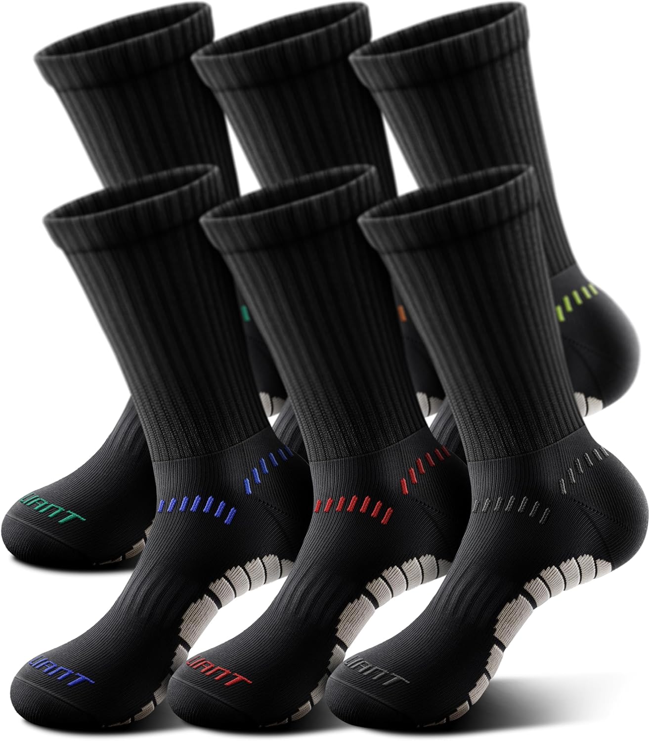 BULLIANT Men Socks, Athletic Compression Crew Socks Cushioned for Men Running Sports Hiking Fishing Arch Support