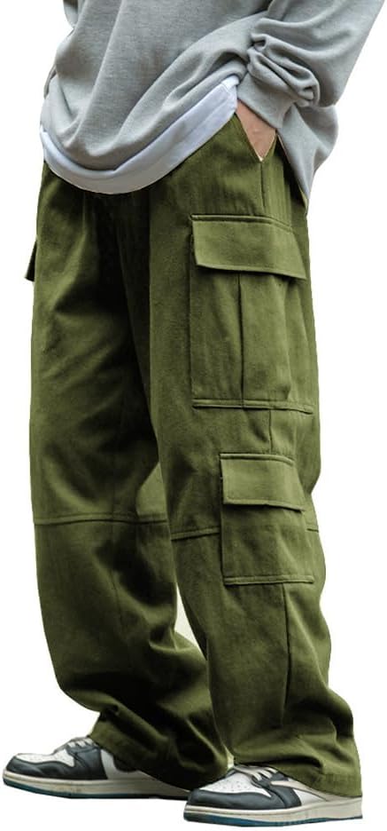 THWEI Mens Cargo Pants Drawstring Elastic Waist Casual Baggy Pant Streetwear Multi Pockets