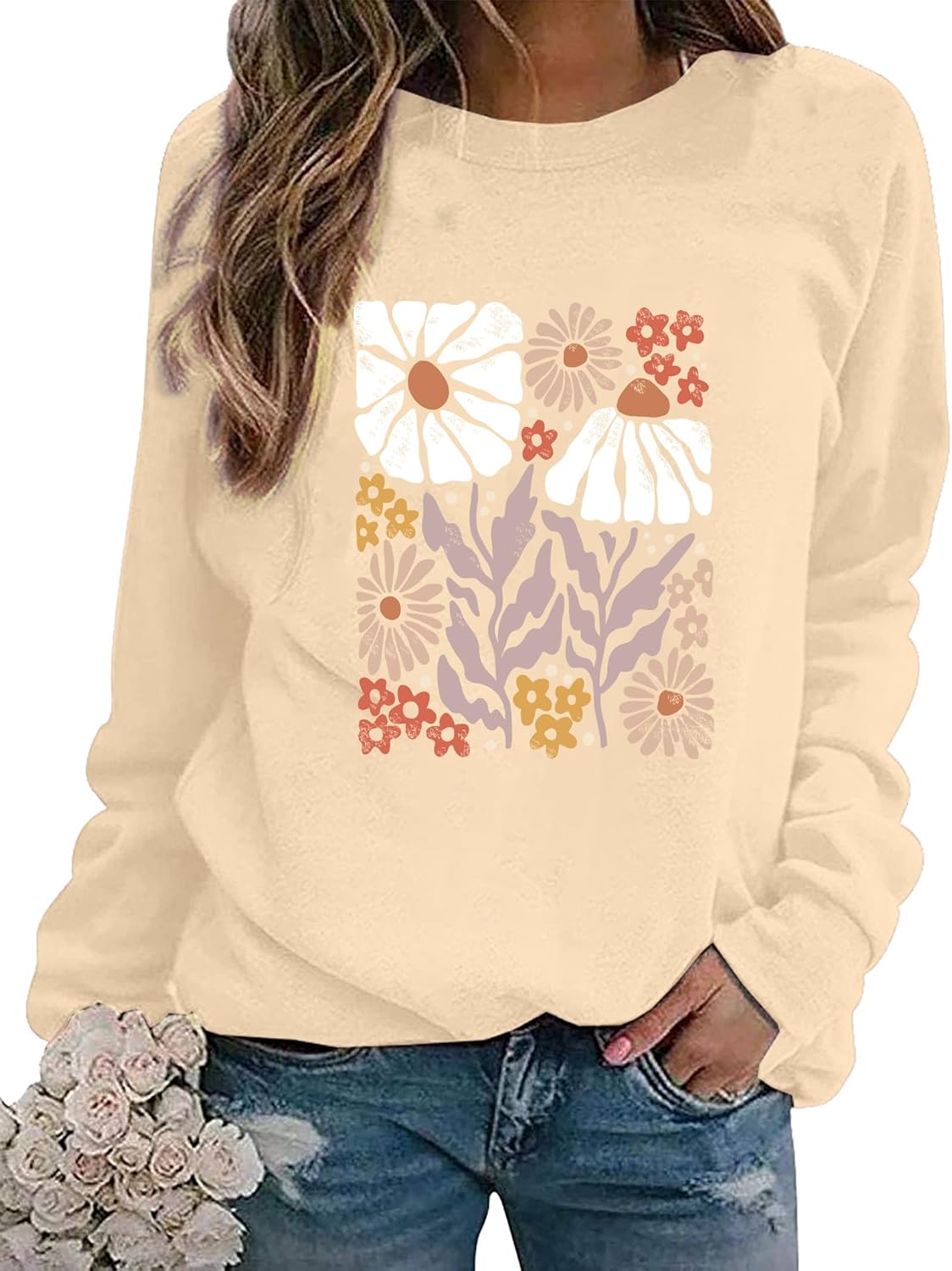 Flower Sweatshirt Women Wildflower Shirts Vintage Minimalistic Flower Print Sweatshirt Fall Autumn Pullover Tops