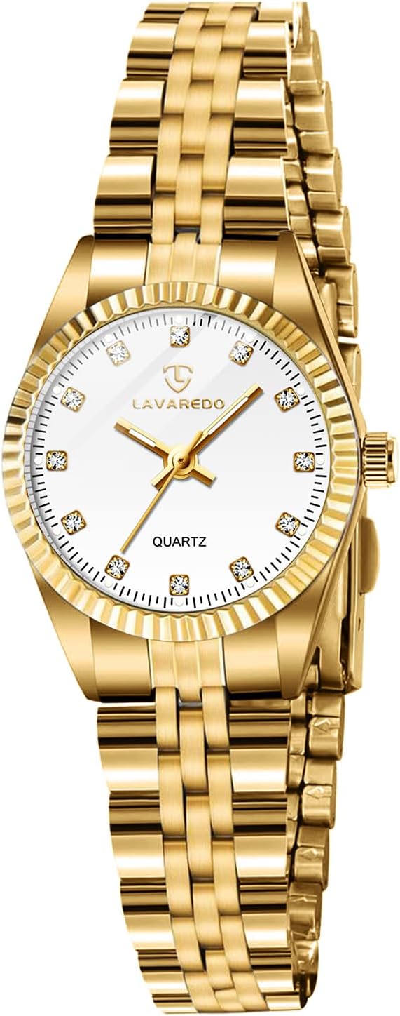 Gold Womens Watch Set, 18K Gold Plated Bangle Bracelets Ring for Women, Dainty Ladies Wrist Waterproof Analog Watch with Luminous, Valentine Anniversary Birthday Gifts for Women
