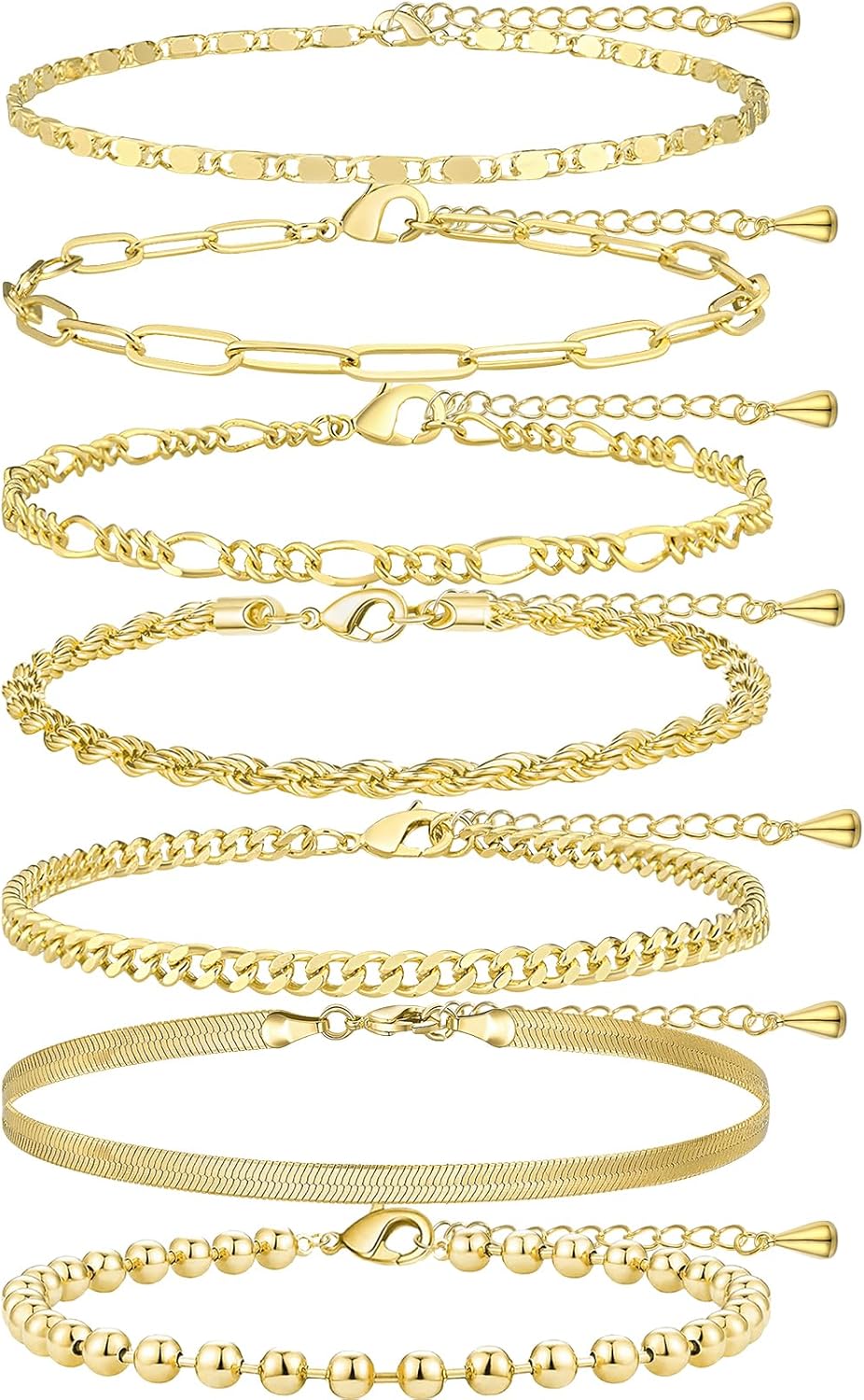 Extra Large Anklets for Women Large Ankle, 14K Real Gold Stack Anklets for Women Waterproof, 10"+2" Adjustable Non Tarnish Large Ankle Bracelets for Women Big Ankles, Ankle Bracelets Set Vacation Jewelry