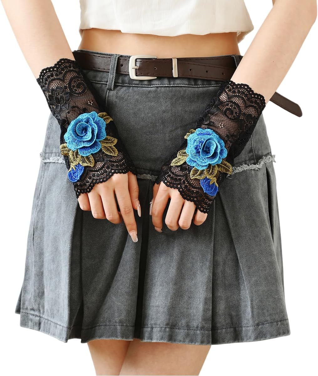 Specell Embroidered Rose Flowers Lace Fingerless Gloves for Bridal Wedding Cocktail Tea Party Evening Prom Costumes Cosplay