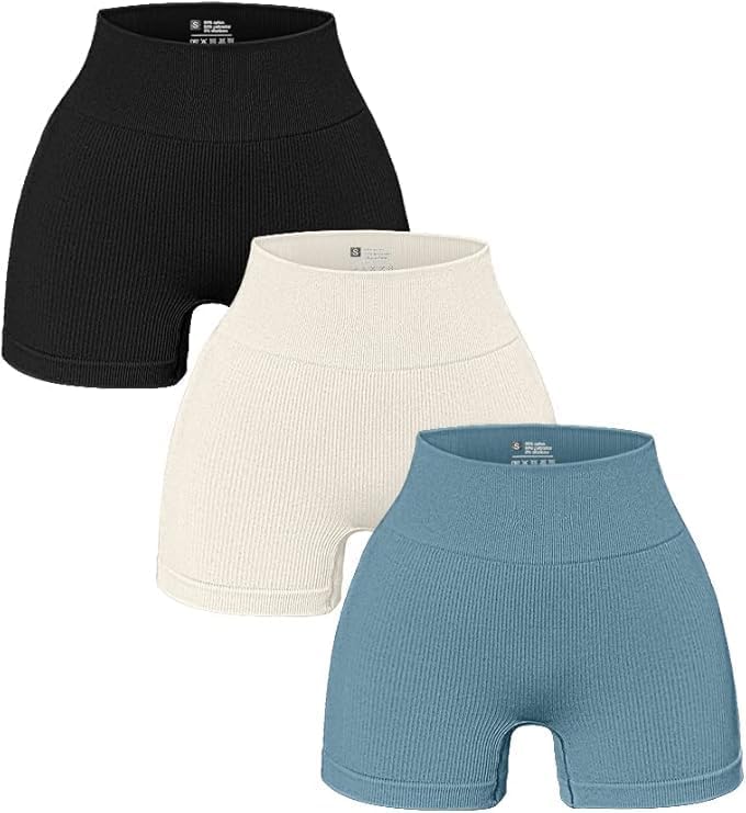 OQQ Women's 3 Piece Yoga Ribbed Seamless Workout High Waist Athletic Legging Shorts Size Small